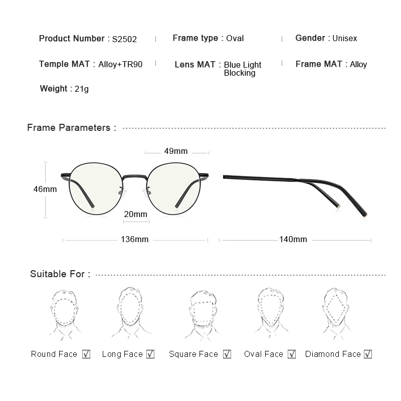 Очки унисекс квадратные с защитой от синего света, S2394FLG