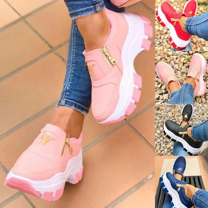 Кроссовки женские на платформе, Вулканизированная подошва, на молнии, Повседневная дышащая обувь на плоской подошве, осень 2021