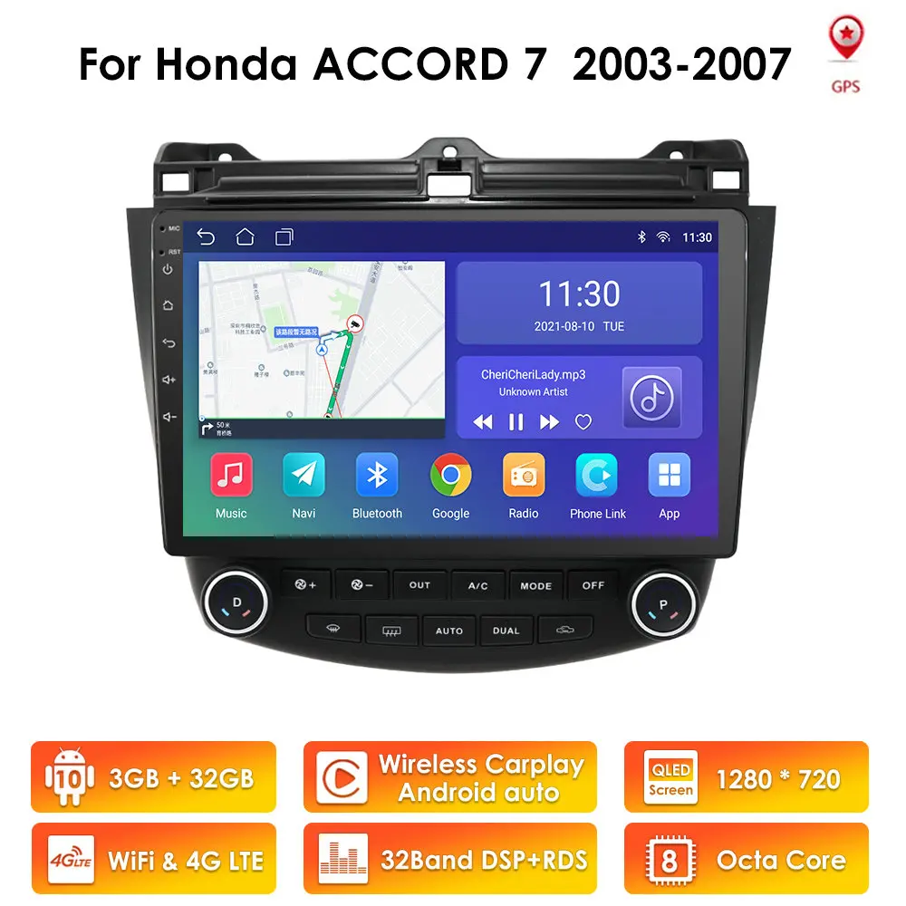 Автомобильный мультимедийный плеер, плеер на Android 10, с четырехъядерным процессором, Wi-Fi, 4G, LTE, USB, GPS, 10 дюймов, типоразмер 2DIN, для Honda Accord 7, 2003, 2004, 2005, 2006, 2007