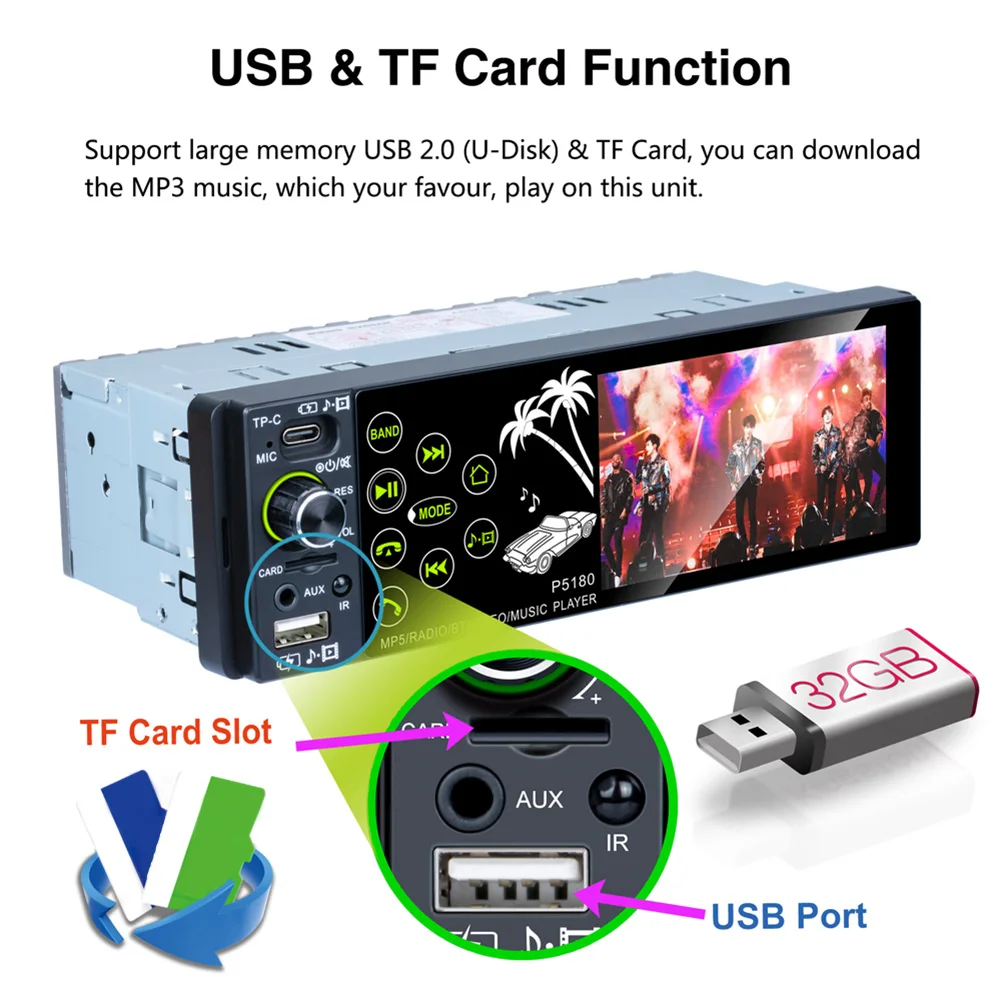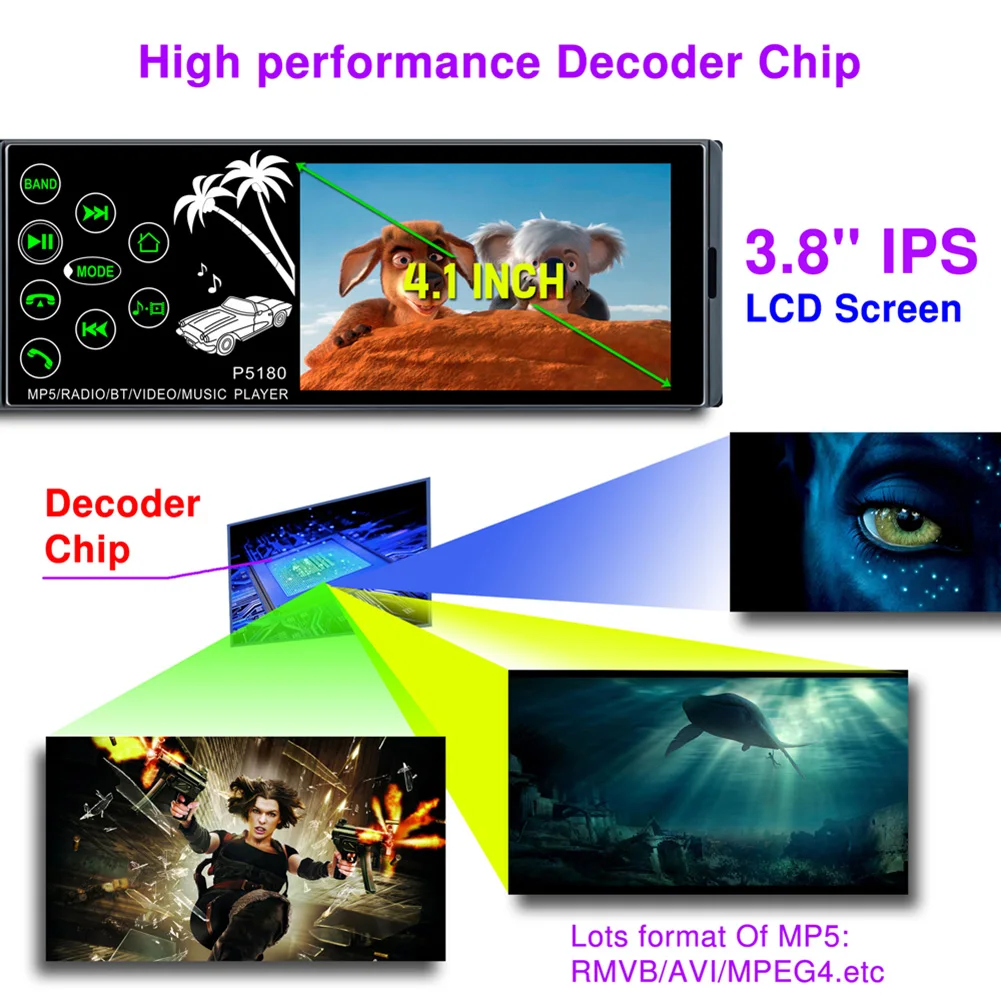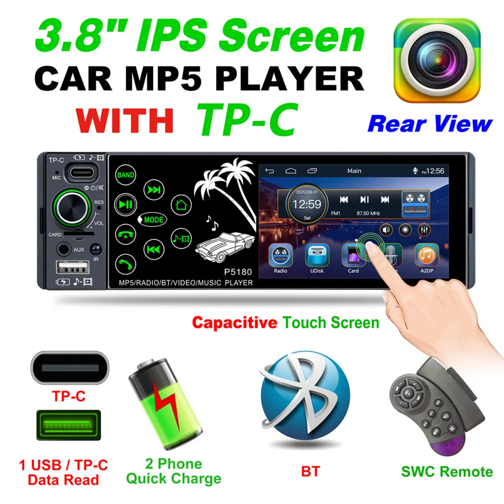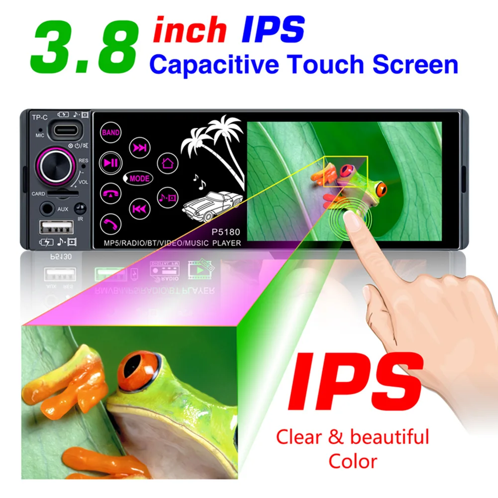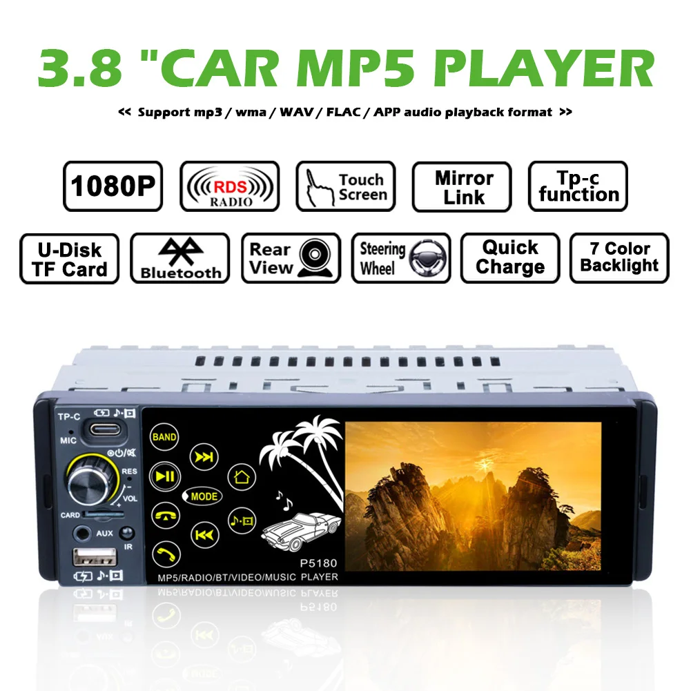 Автомагнитола P5180, 3,8 дюйма, IPS-дисплей, мультимедийный проигрыватель, головное устройство AUX, TF, FM-радио, автоаксессуары