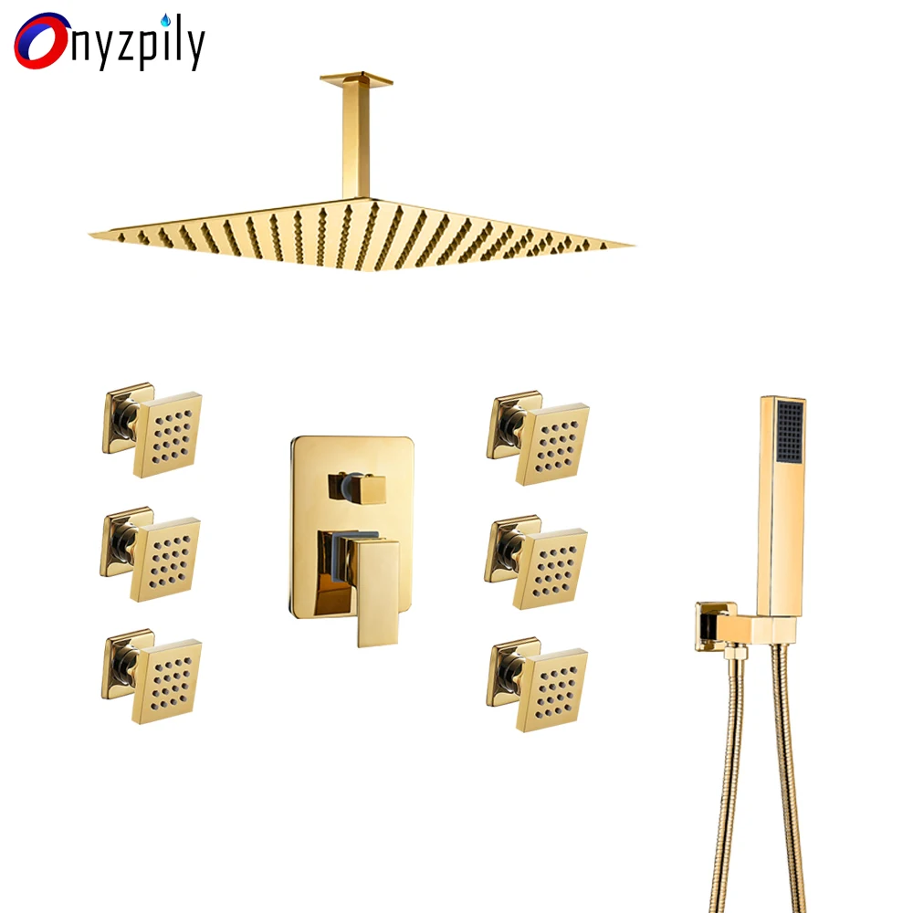Золотистый душевой набор Onyzpily, смеситель для душа и ванны, кран для воды, насадка для душа из нержавеющей стали, потолочный массажный струйный кран для тела
