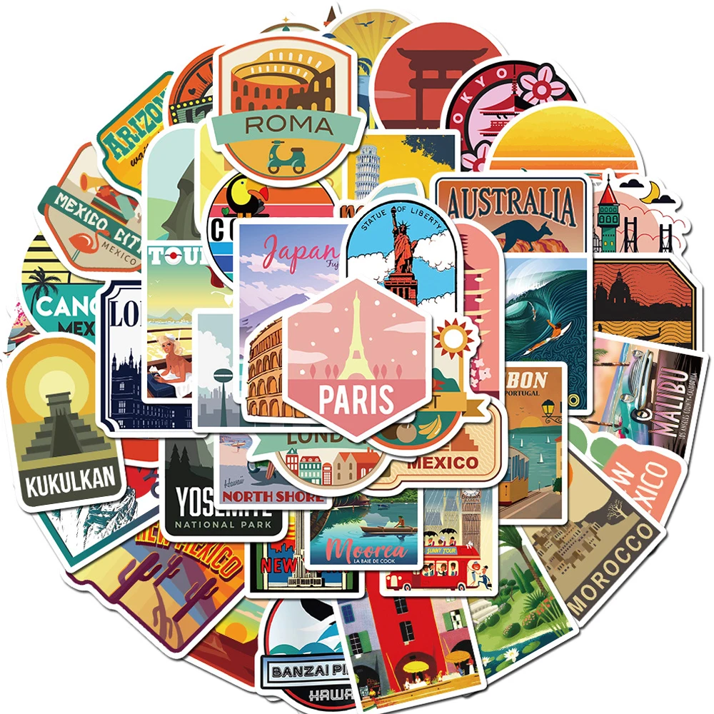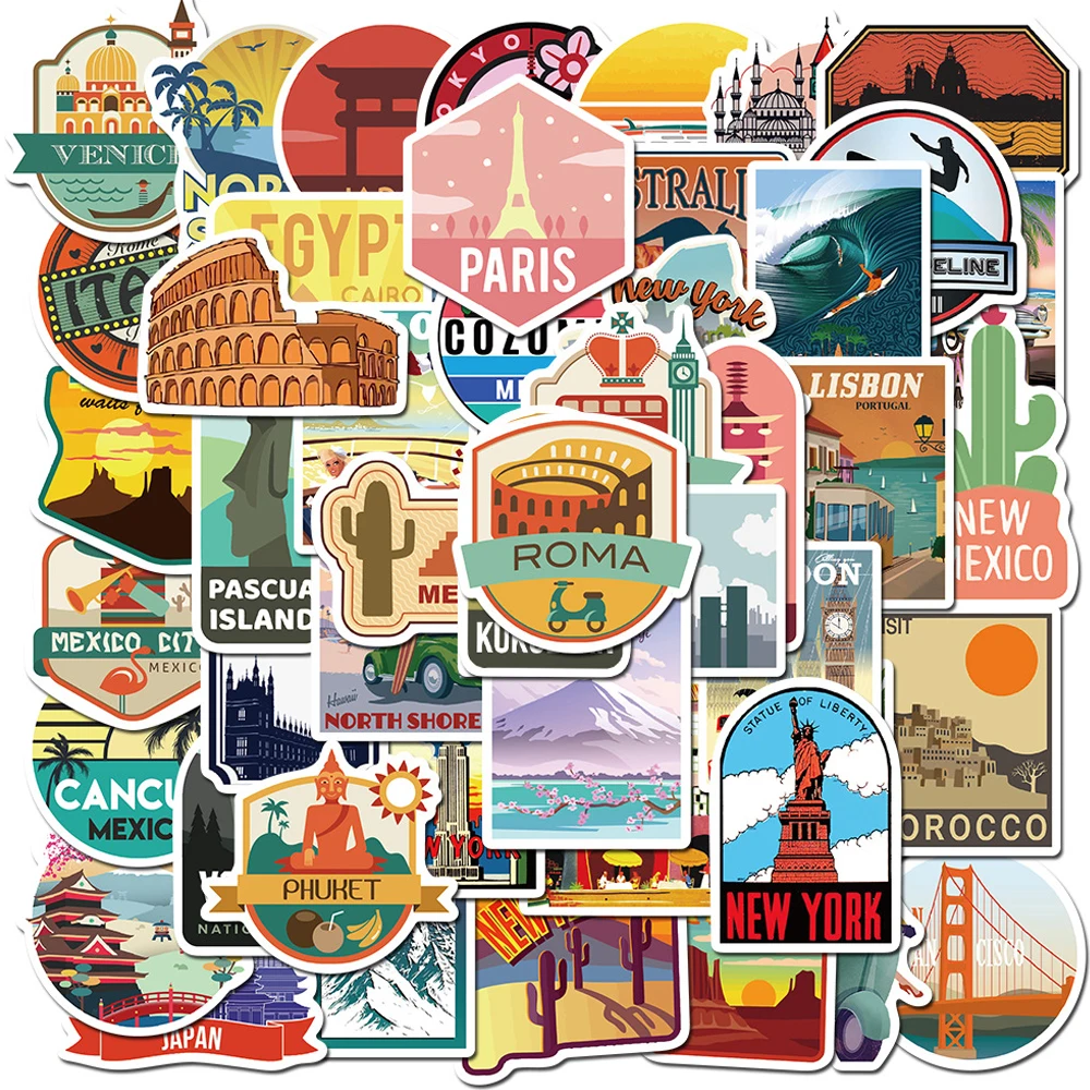 50 шт.компл. Global Travel City наклейки с пейзажем Decal Vinyl for...