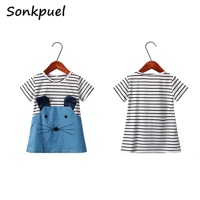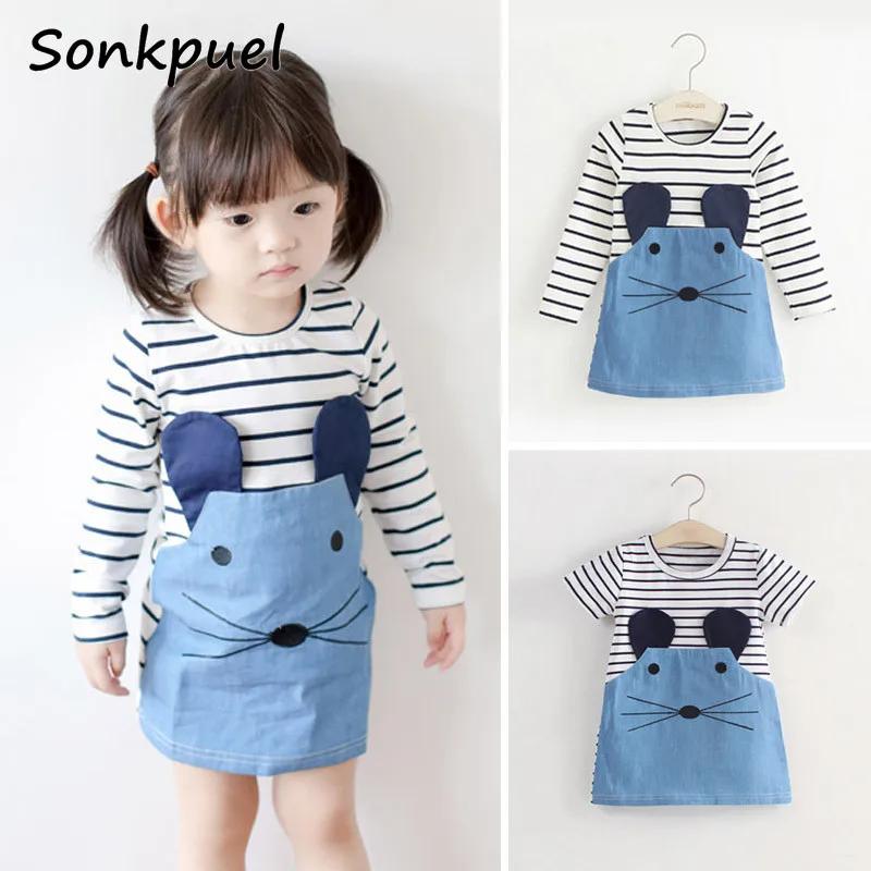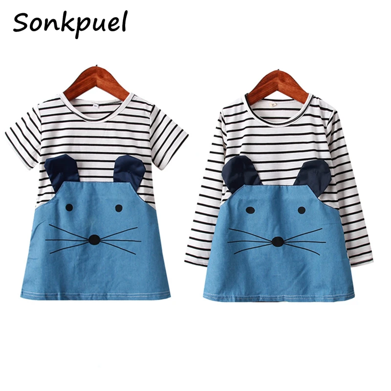 Новинка, Детские платья для девочек, элегантное джинсовое платье в полоску для девочек 2, 3, 4, 6, 8 лет, летняя одежда для девочек