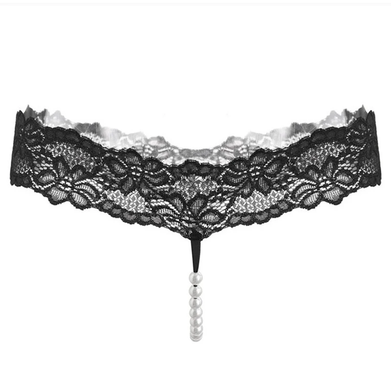 Стринги женские кружевные с открытой промежностью и жемчугом