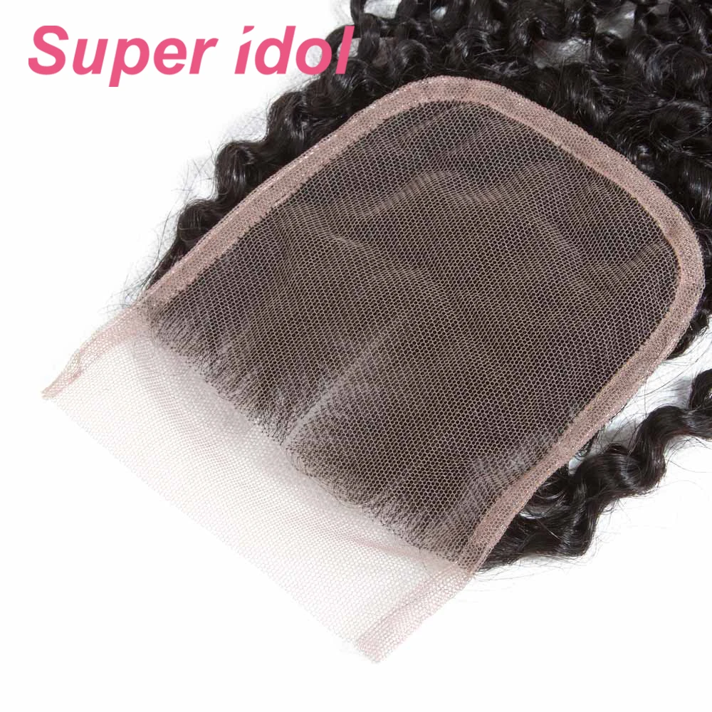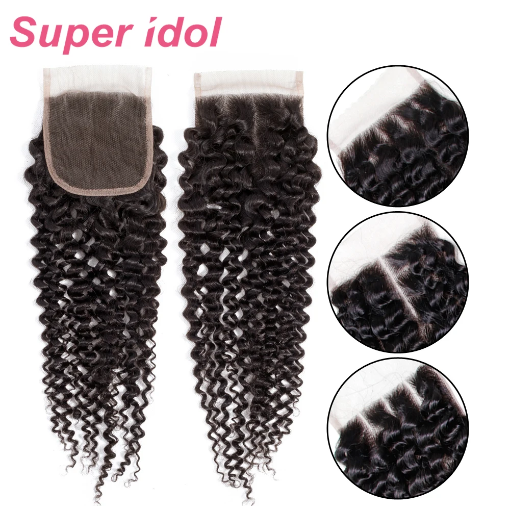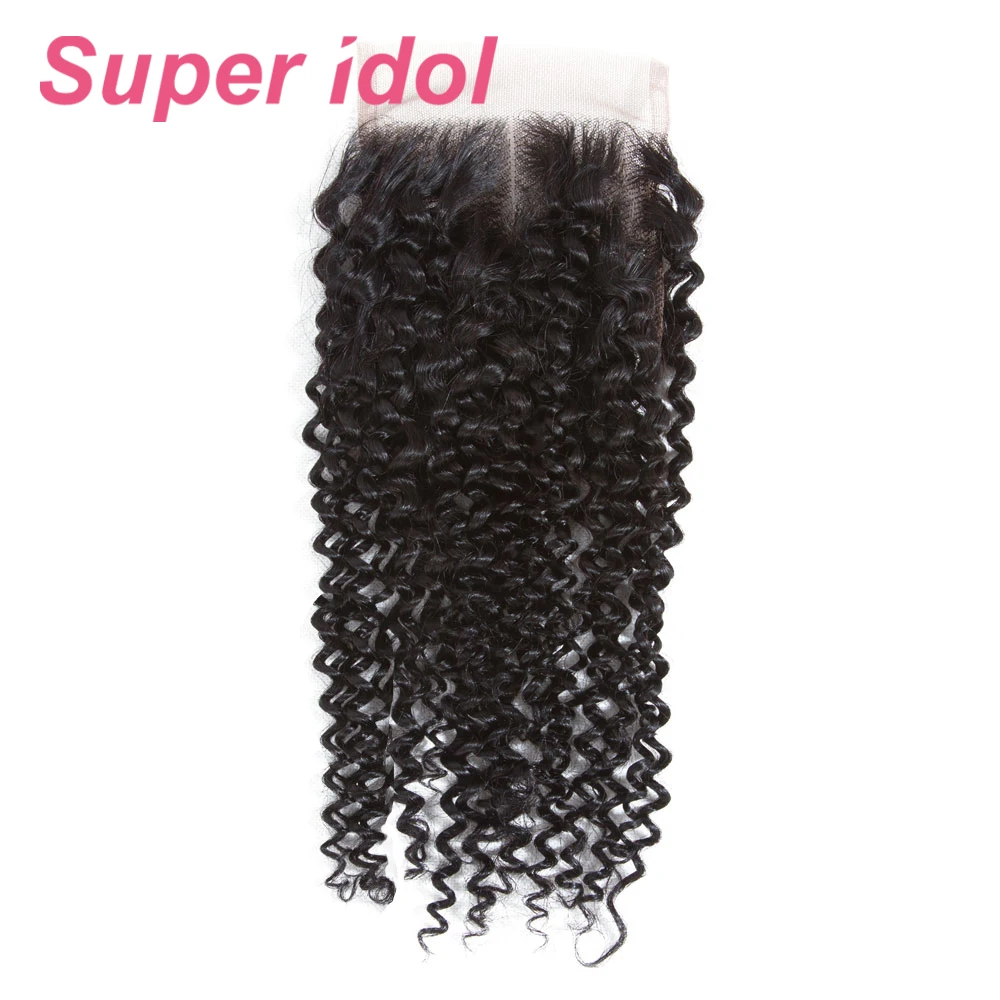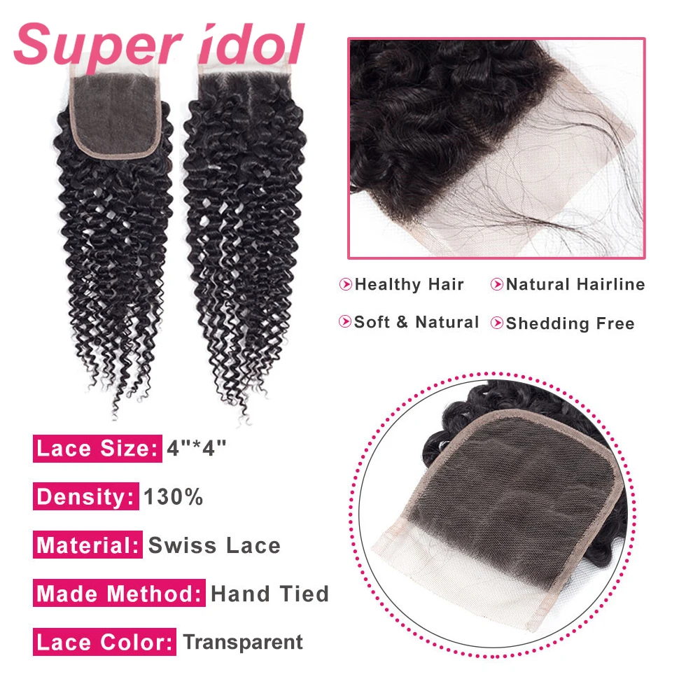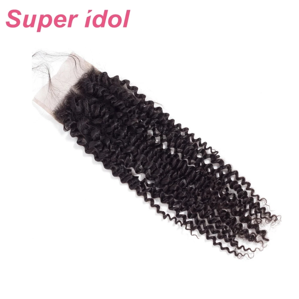 HD прозрачные кудрявые 4X4 кружевные застежки бразильские Реми человеческие волосы натуральные черные предварительно выщипанные с детскими волосами