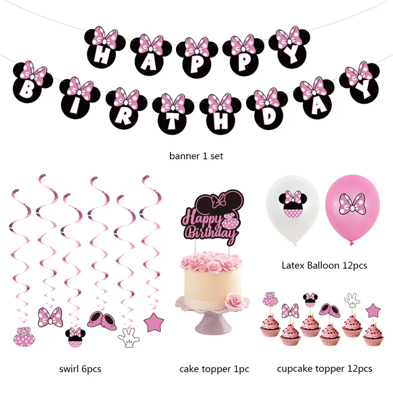 1 комплект воздушные шары с изображением Минни Микки и Минни Маус Мышь День рождения Декор Детский праздничный костюм баннер торт топпера, Disney и принтом в виде Минни Маус тема шар