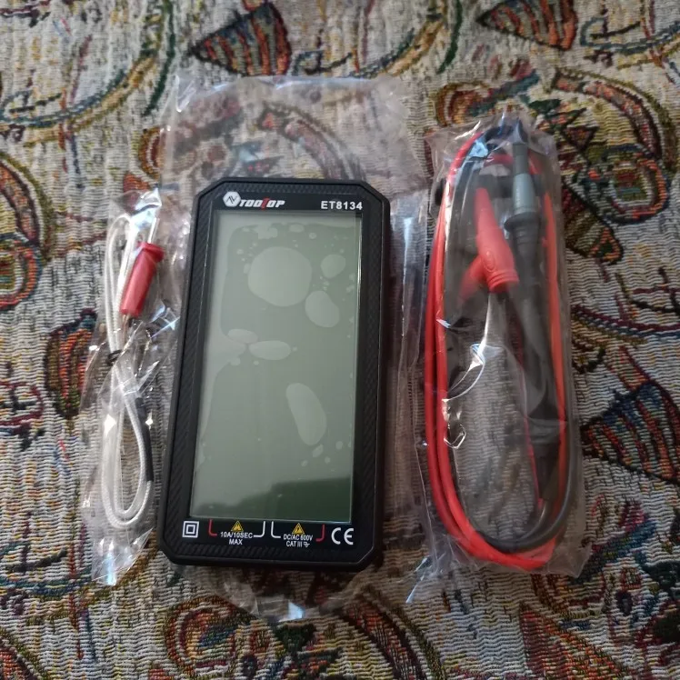 Этот мультиметр с большим ЖК-дисплеем, он небольшого размера, как фаблет, более практичный и новый. С многофункциональностью, такой как напряжение переменного тока, измерение напряжения постоянного тока и тока, сопротивление, емкость, измерение диодов и так далее. Давайте попробуем, это не подведет.Особенности:С экраном 4,7 дюйма высокой четкости, который позволит вам работать и более четко видеть данные, дает вам лучший опыт использования.Многофункциональность: измерение напряжения и тока постоянного и переменного тока используется для, емкость и сопротивление, Бесконтактное измерение напряжения и температуры NCV, измерение диодов и непрерывности, распознавание проводов firewire и null.С функцией двойного звука светильник световой сигнализации, которая может лучше напомнить вам.С мягкой защитной крышкой dura-ble и функцией сейсмозащиты, которая может защитить мультиметр и продлить его срок службы.Благодаря функции фонарика и подсветки вы можете использовать его в условиях слабого освещения или в темноте.Характеристики:Материал: АБСЦвет: черныйМощность: 2 аккумулятора * AAA (не входит в комплект)Постоянный ток: 10АПеременный ток: 10АНапряжение постоянного тока: 600 ВНапряжение переменного тока: 600 ВСопротивление: 600 Ом ~ 60 МОмЕмкость: 6 нФ ~ 60 МФЧастота: 0,1 Гц ~ 1 ГцТемпература: -40 ℃ ~ 1000 ℃/-40 ℉ ~ 1832 ℉Диод: 1 вЗуммер: 1 ОмРазличие огня: ДаНТС: ДаПодсказка низкого напряжения: ДаАвтоматическое отключение: ДаT-RMS: ДаПодсветка: ДаСохранить дату: ДаФонарик: ДаРазмер изделия: 143*77,5*23 мм/5,6*3,1 * дюймаПосылка: 153*87,5*30 мм/6,0*3,4 * дюймаВес посылка: 339 г/12,0 унцииУпаковочный лист:1 * мультиметр1 * Руководство пользователя1 * Температурный кабель1 * тестед
