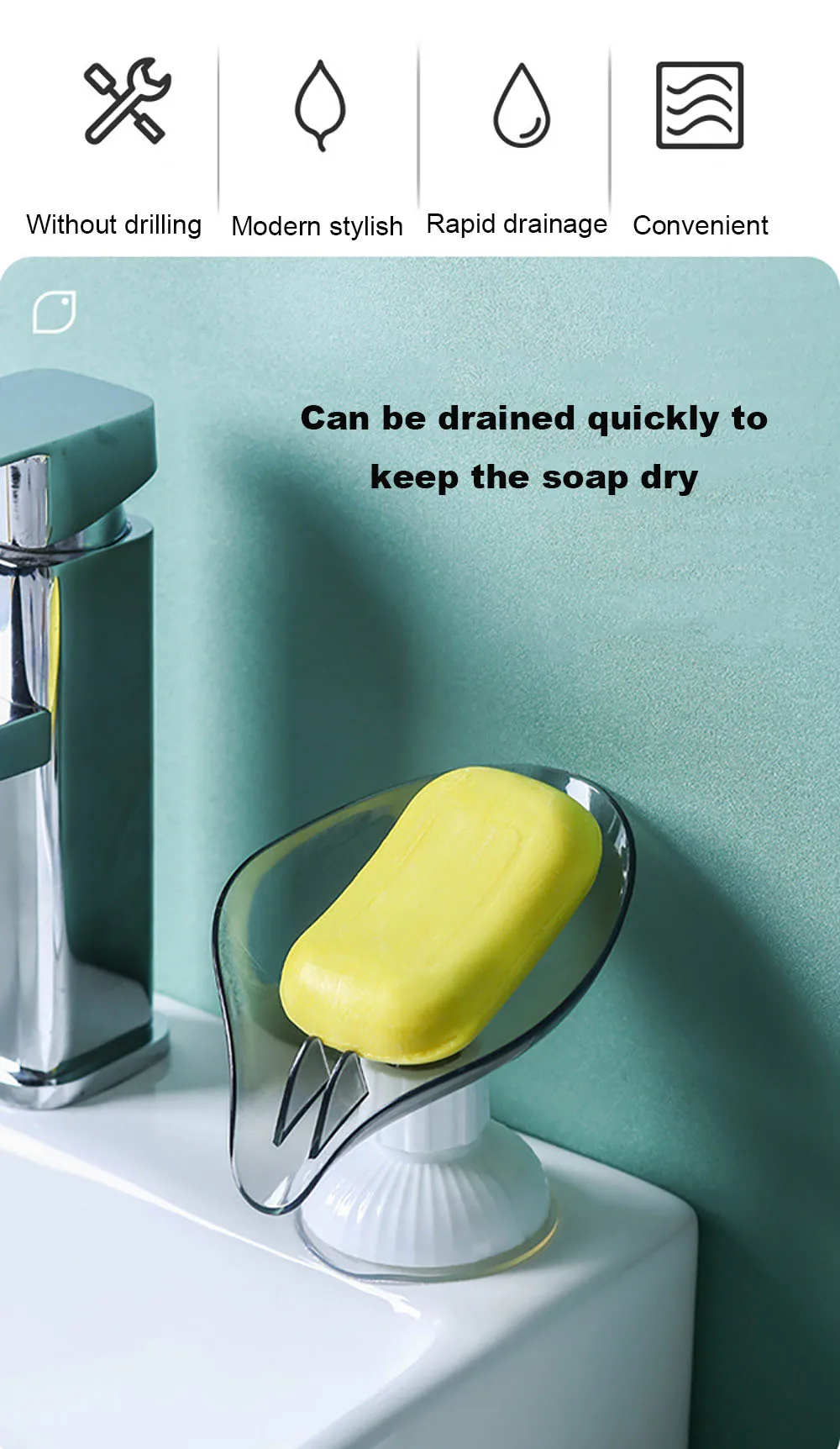 Держатель для мыла в форме листа, мыльница для ванной, большая присоска, для быстрого слива