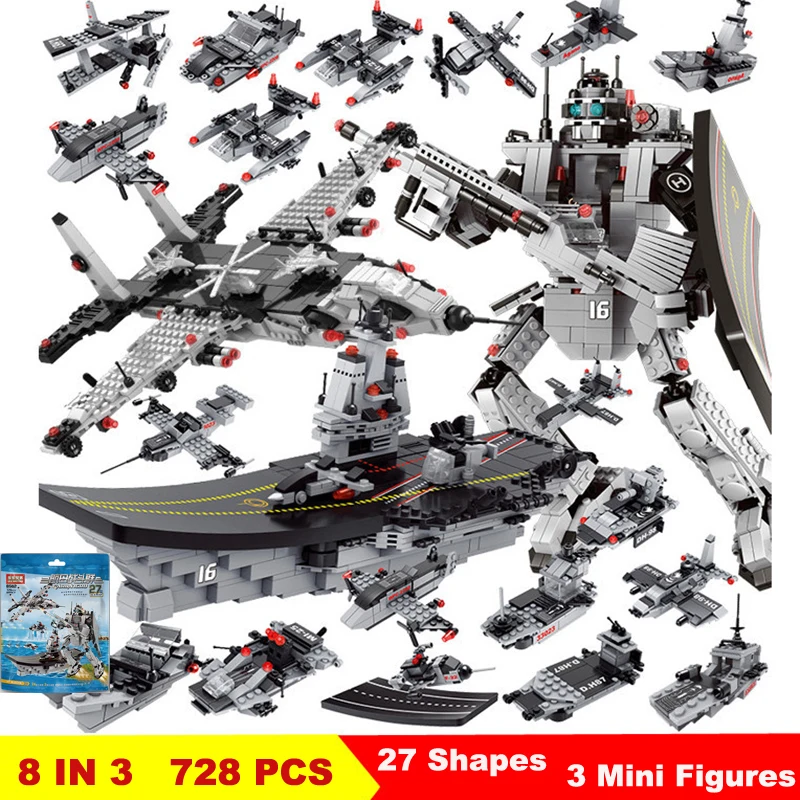 Робот-истребитель и боевой корабль 728 шт., Детский конструктор, мини-фигурки, игрушки, развивающая игрушка для мальчиков