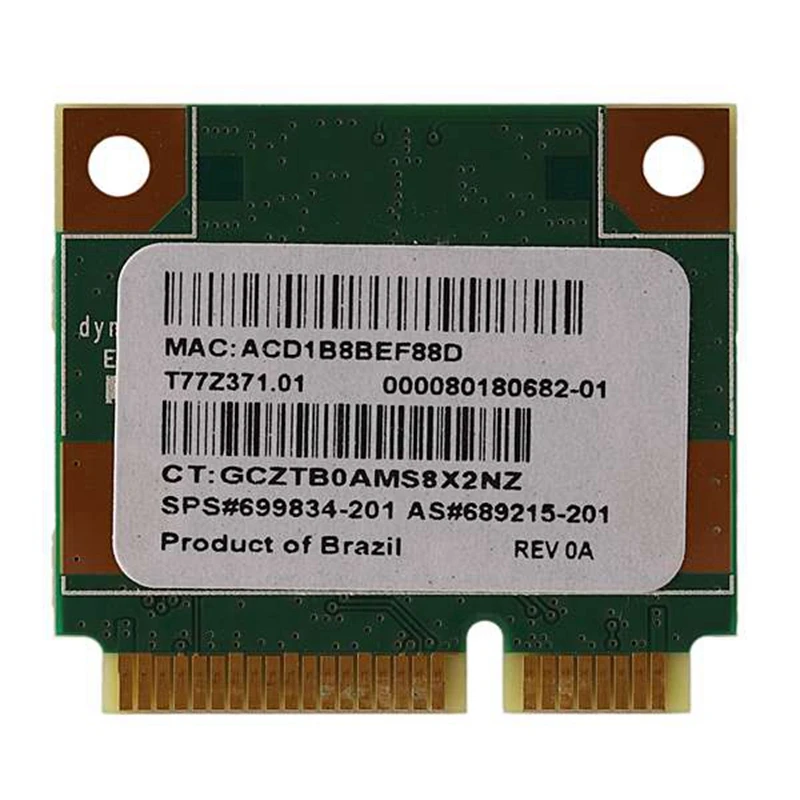 Применение: ноутбукГнездо адаптера: Mini PCI-EПоддерживаемая Частота Wi-Fi: 2,4 ГГцТип интерфейса: Mini PCI-ExpressБеспроводной протокол: 802.11nСкорость передачи по ЛВС: EthernetПрименимый Тип сети: Fast EthernetЧастотный диапазон: одночастотный (2,4 ГГц)Беспроводной протокол: 802.11b, 802,11g,802.11nСовместим с: номер деталей SPS #690020-001 для 655 650 CQ58 M4 M6 4445S DV4 G4 G6 G7...Название: беспроводная сетевая картаТип: беспроводнойВид: внутреннийЦвет: зеленый + черныйМатериал: PCBПосылка1 х сетевая карта2 антенныВ комплект входит только указанное выше содержимое, другие продукты в комплект не входят.Примечание: светильник вая съемка и различные дисплеи могут привести к тому, что цвет товара на изображении будет немного отличаться от реального. Допустимая погрешность измерения +/- 1-3 см.