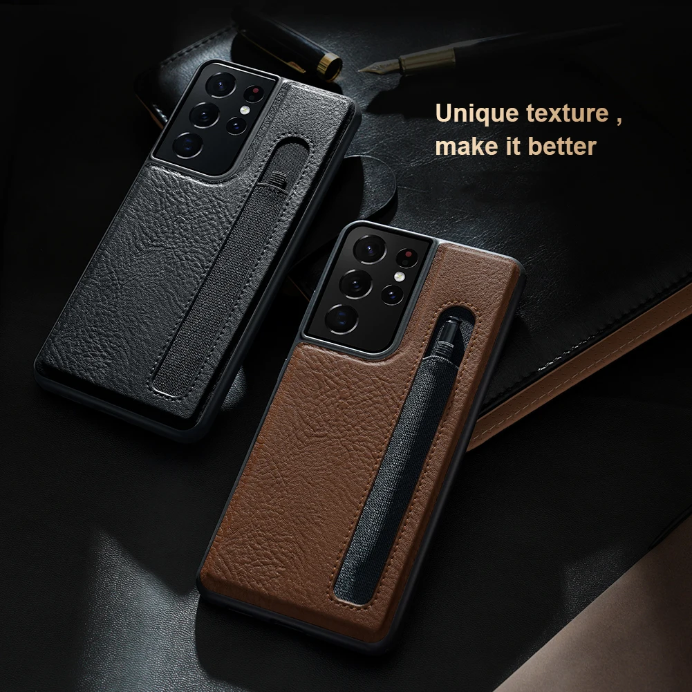 Чехол для Samsung Galaxy S21 S22, оригинальный кожаный чехол-наклад...
