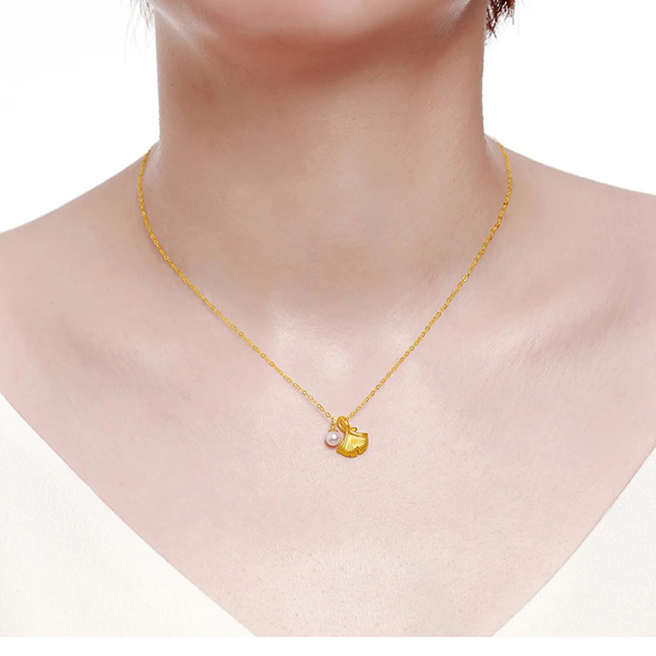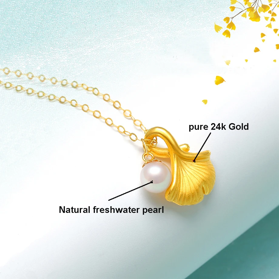 Цепочка из чистого 18-каратного золота 999 пробы с подвеской гинкго билоба XF800, подарок для женщин, D565