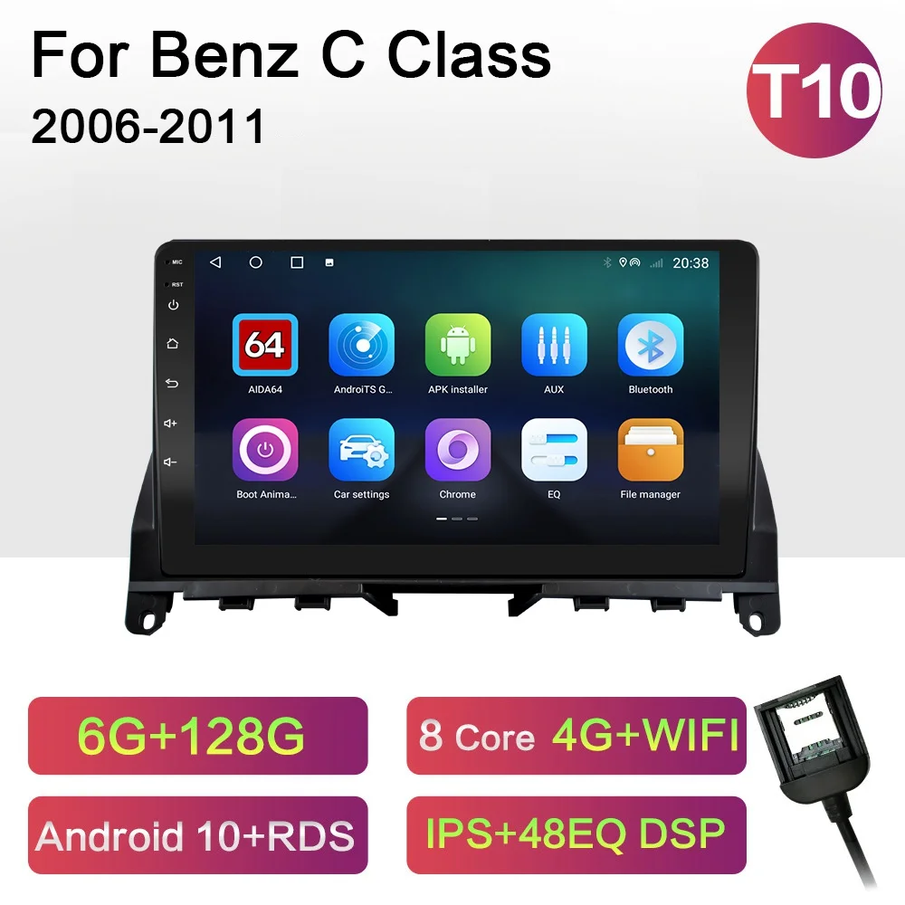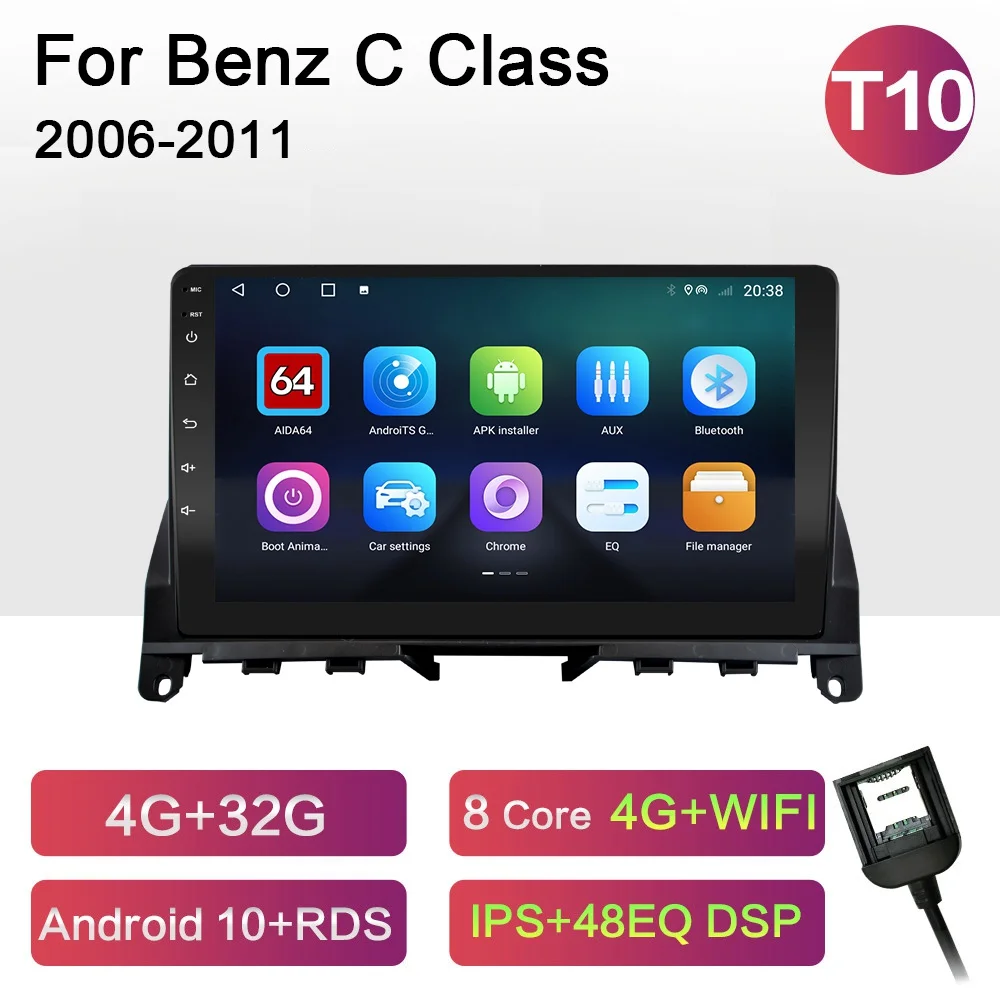 Android 10,0 автомобильный Радио GPS навигация WiFi CarPlay RDS IPS мультимедийный плеер для Mercedes Benz C Class 3 W204 S204 2006-2011