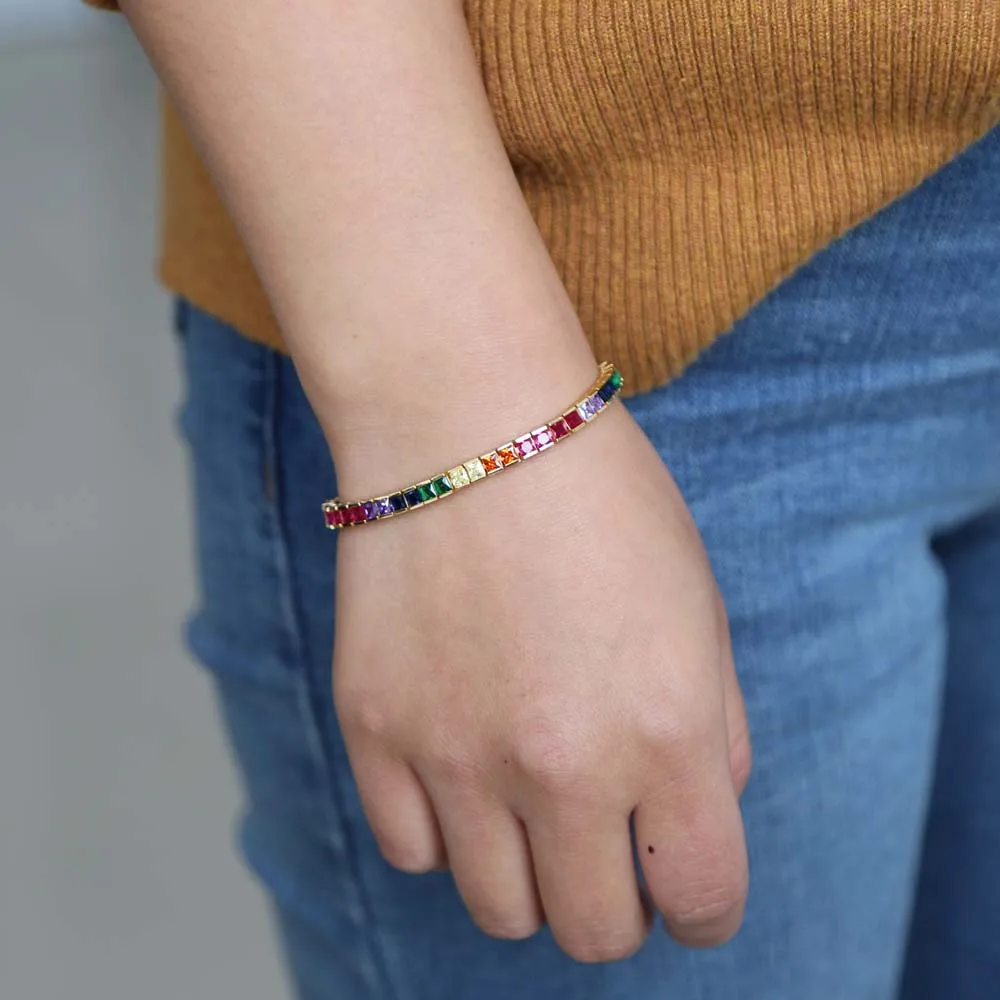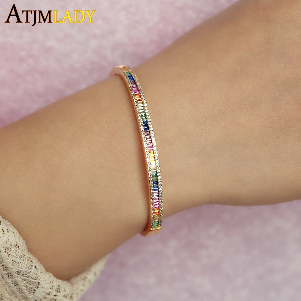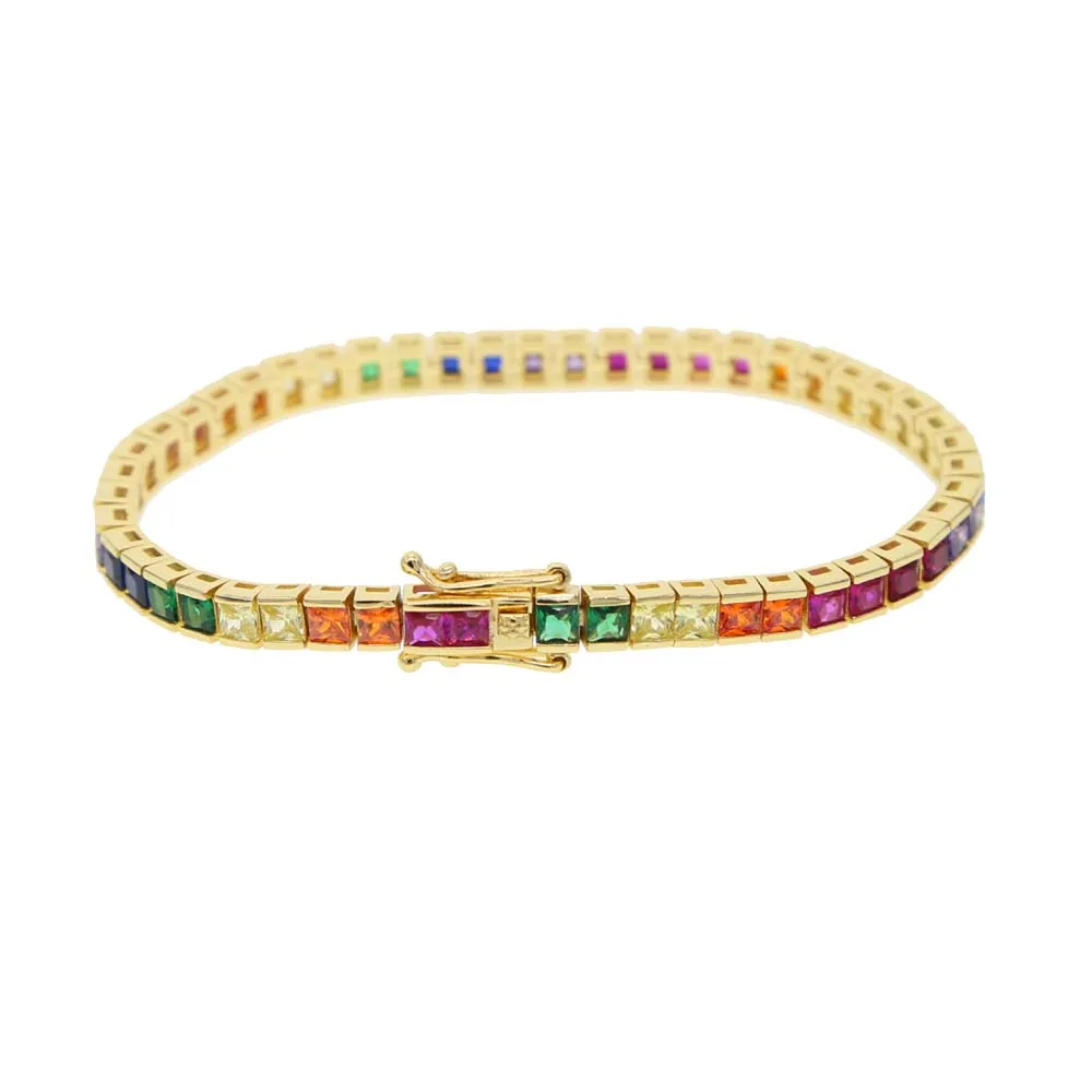 Оригинальная багета для женщин и мужчин, роскошные ювелирные изделия, позолоченный Радужный Cz цепь для тенниса, великолепный модный браслет, новинка 2022