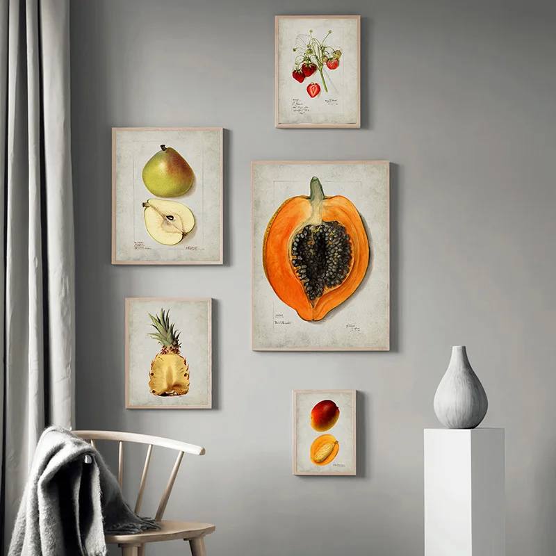 Холст с изображением фруктов и овощей, настенный постер для кухни, столовой, постер с изображением оранжевого ананаса, художественная живопись, винтажная картина, украшение для ресторана