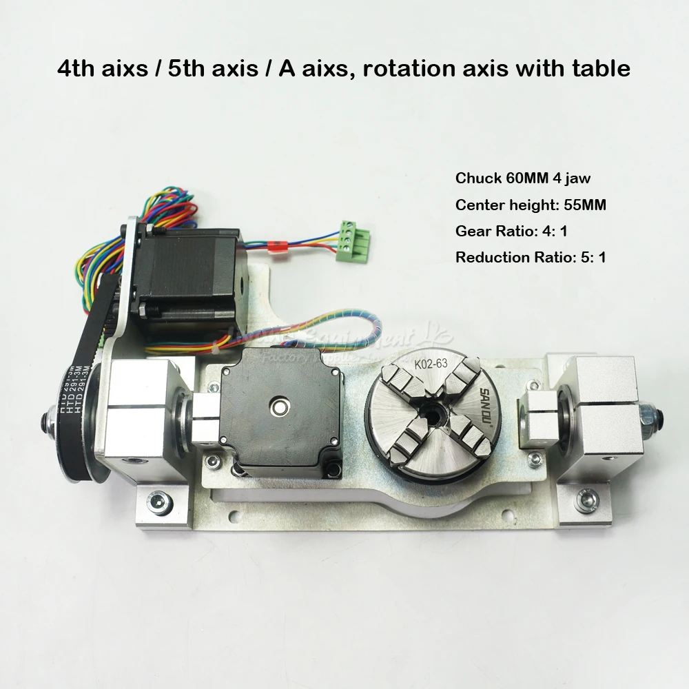 ЧПУ 4-я ось5-я ось (A Aixs, вращающаяся ось) с столом для вращающейся оси 4-х кулачковый патрон 60 мм для 5-осевого ЧПУ маршрутизатора, гравера