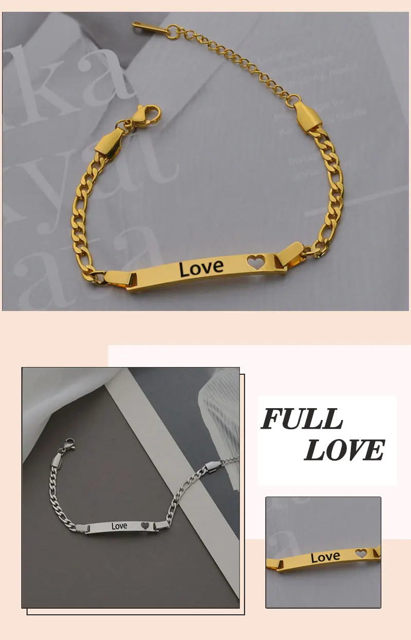 Персонализированные гравировка слов выбитое сердечко бар Браслеты нержавеющей стали для Для женщин мужчин Дата фамилия выгравированы пару подарки