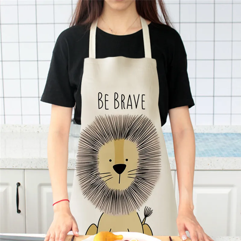 Кухонный Фартук для готовки, хлопковые льняные фартуки с принтом животных для Льва, лося, медведя, лисы, женские нагрудники без рукавов для выпечки