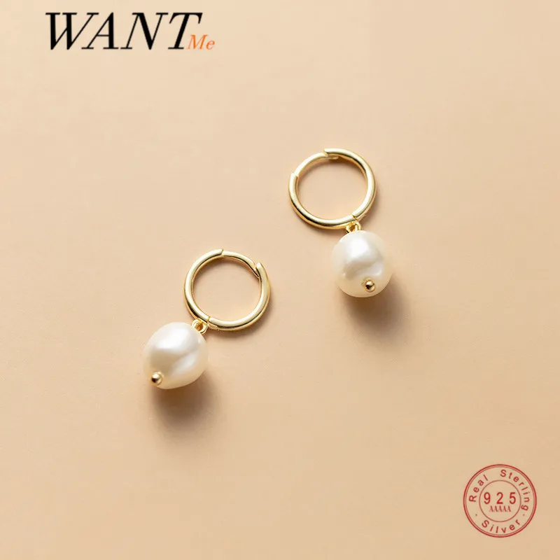 WANTME натуральная 925 стерлингового серебра минималистский натуральный пресноводный барочный жемчуг обниматься серьги для женщин очаровательные вечерние ювелирные изделия