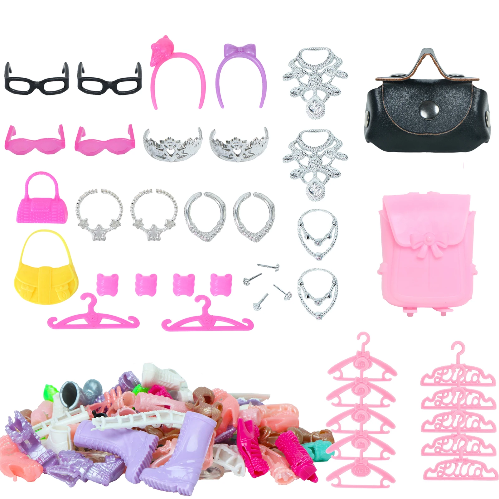 48 шт.лот, модные, 12 пар обуви, 2 сумки в разных стилях, 10 вешалок, случайные 24x аксессуары, Одежда для кукол Барби, детские игрушки