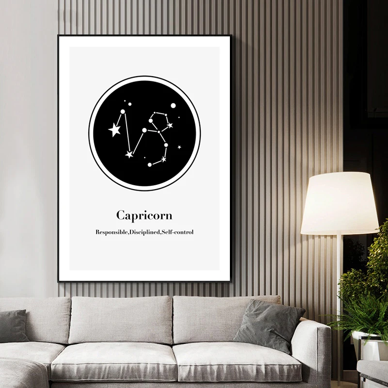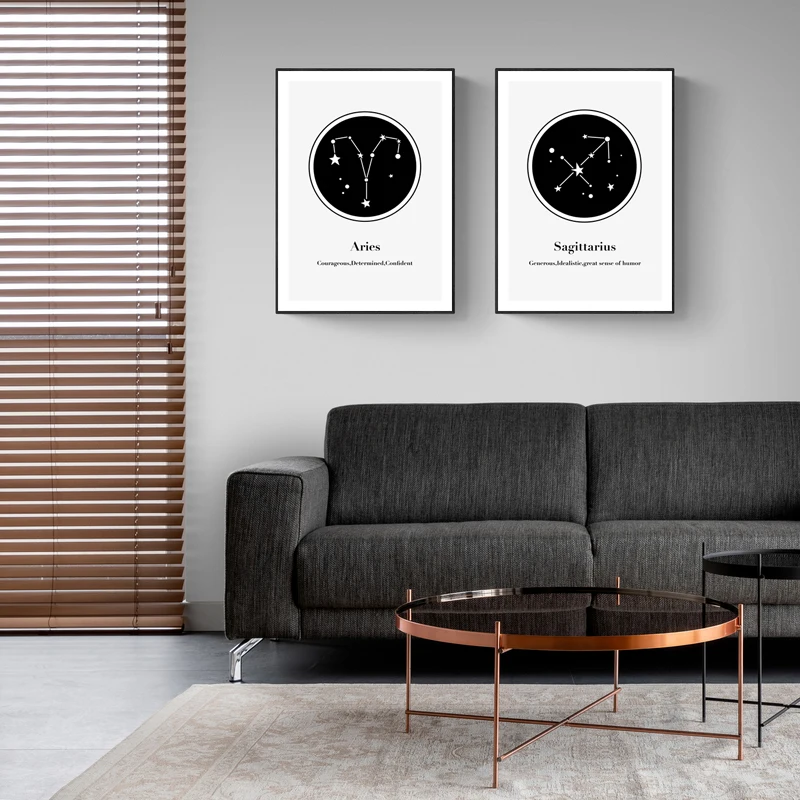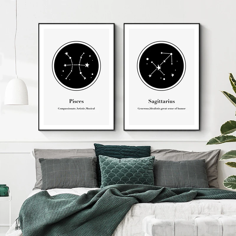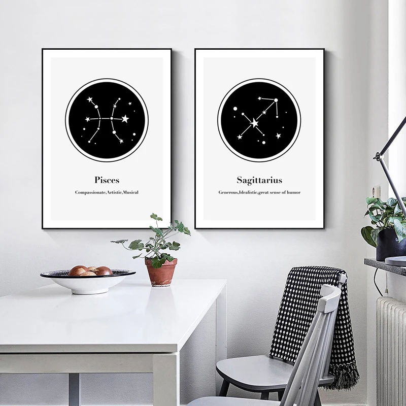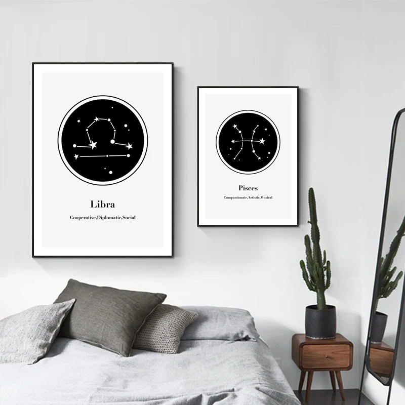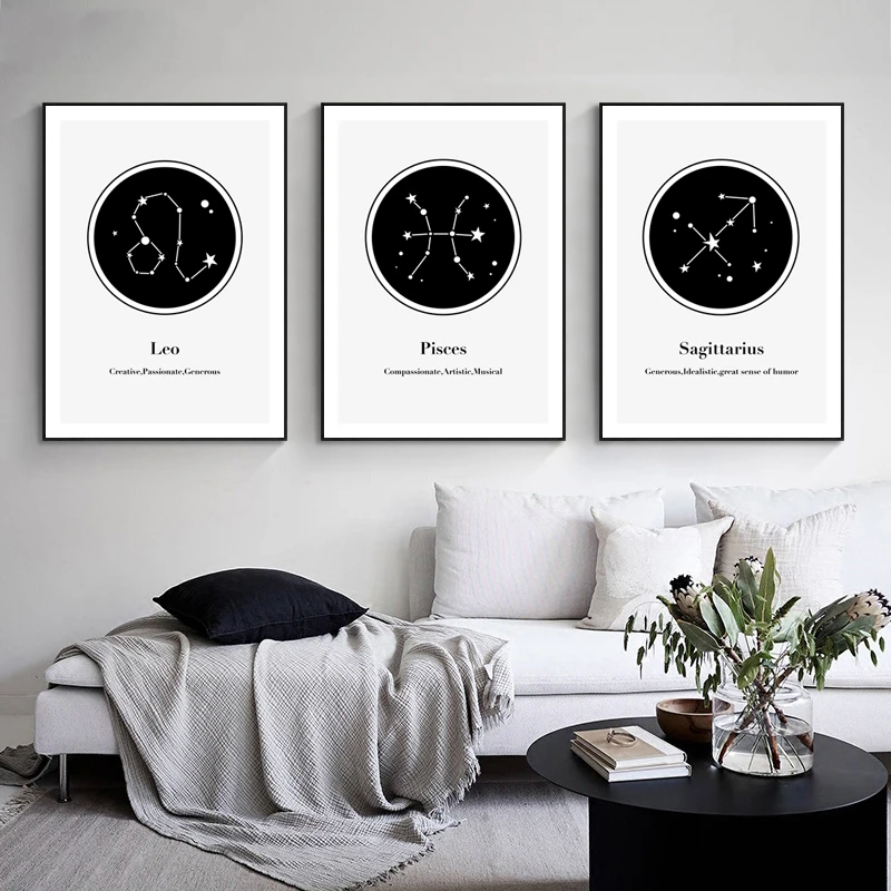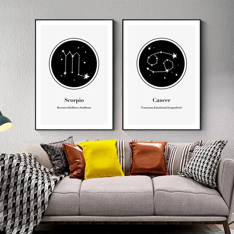 Настенная картина со знаками Зодиака в скандинавском стиле, Картина на холсте, черные и белые постеры с созвездиями и принтами для декора гостиной
