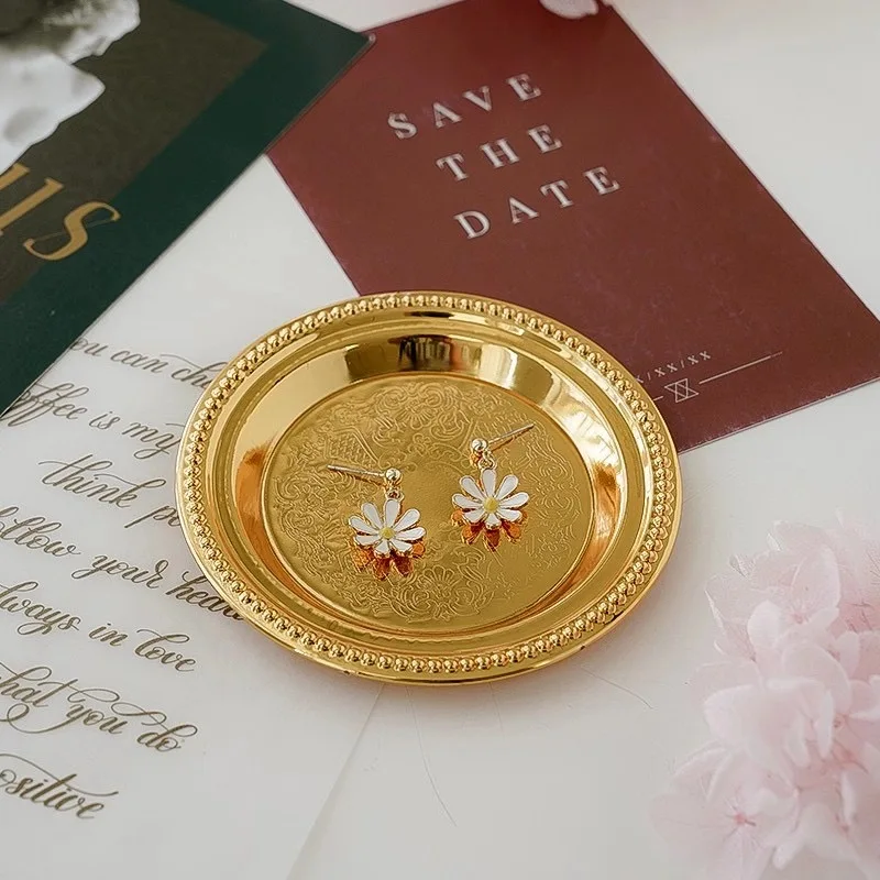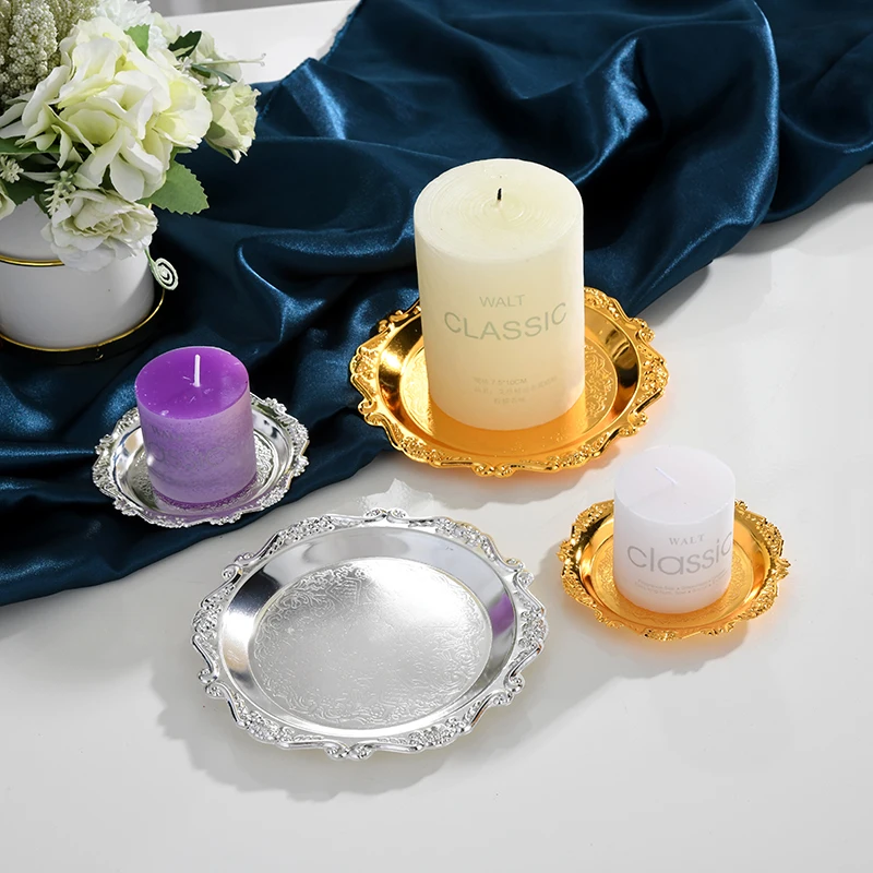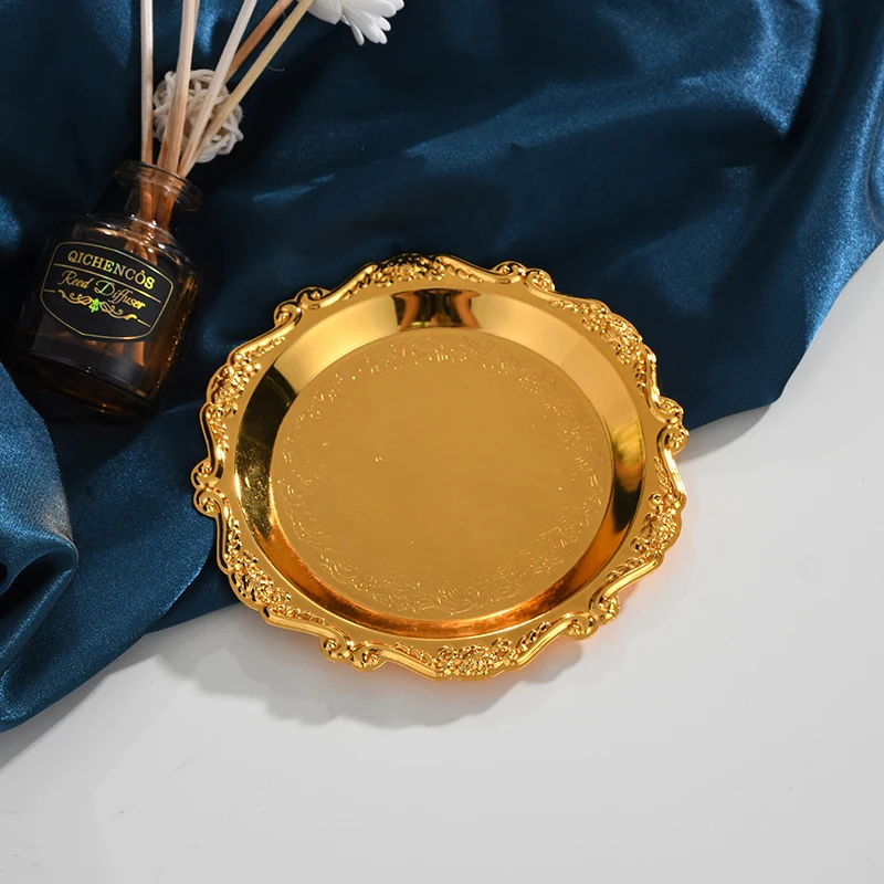 Винтажный рельефный поднос для хранения, зеркальный Железный декоративный поднос, тарелка для демонстрации косметики, ювелирных изделий, настольная подсвечка, органайзер для хранения мелочей