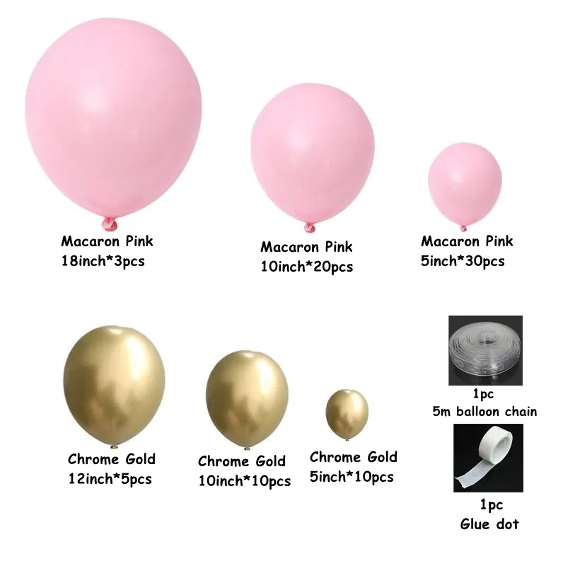 Шары воздушные из латекса, розовые, синие, золотые, арочный комплект хром, 80 шт.