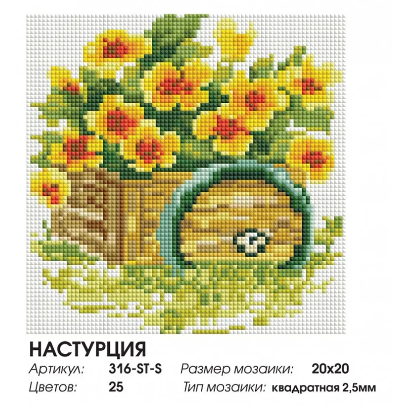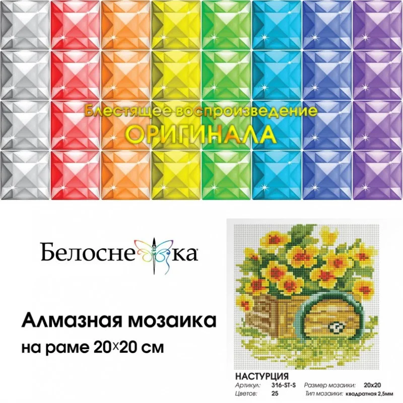 "Настурция" Алмазная мозаика на подрамнике 20х20 см. Белоснежка. 316-ST-S