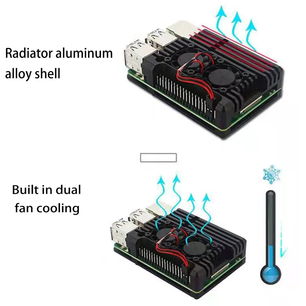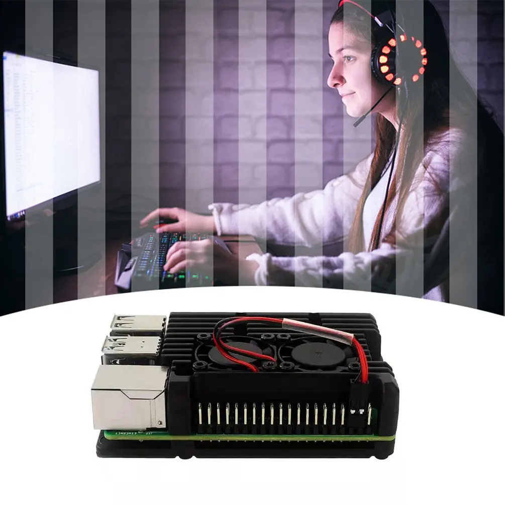 Корпус вентилятора охлаждения Raspberry Pi, специальный алюминиевый корпус с охлаждающим вентилятором, черный металлический корпус для быстрого рассеивания тепла
