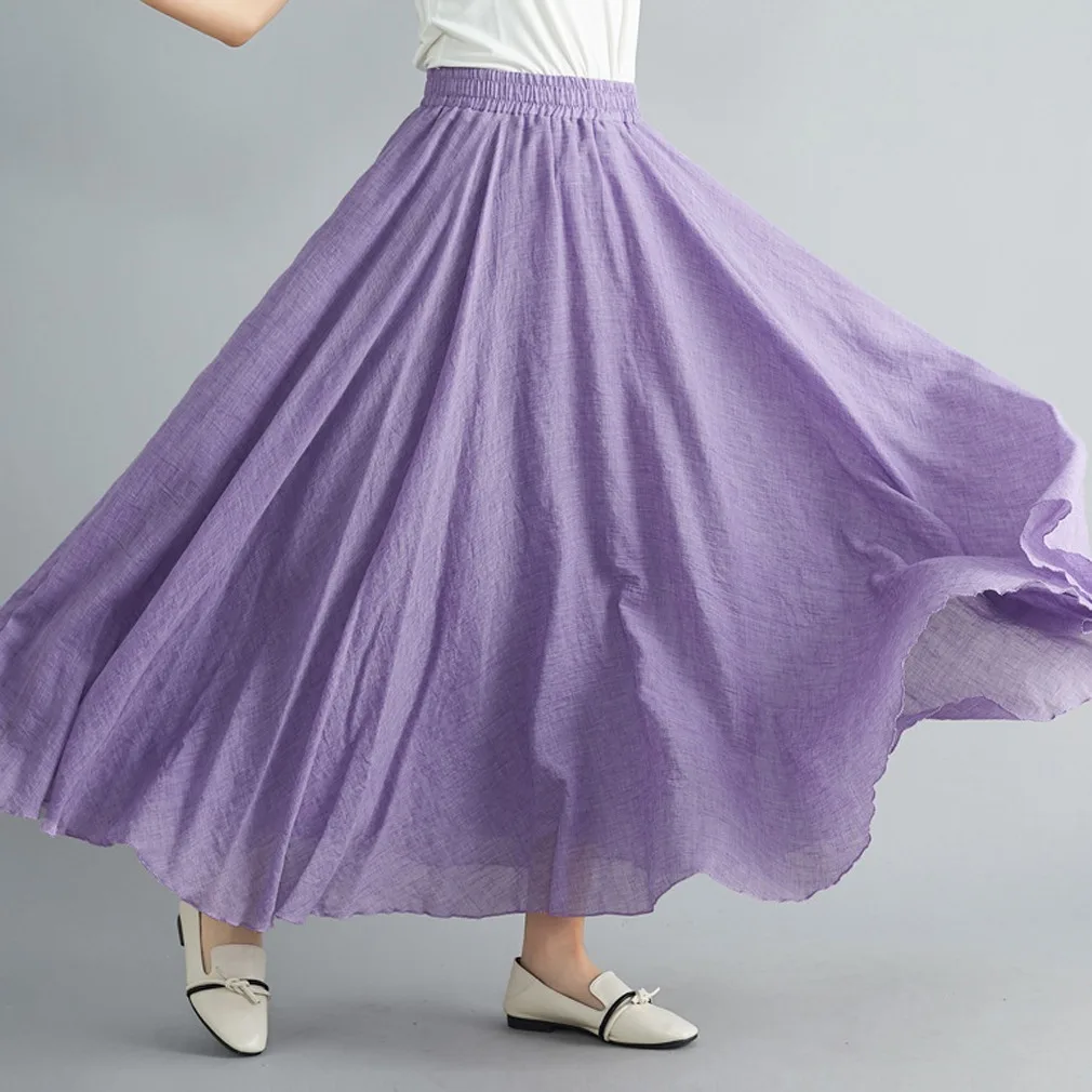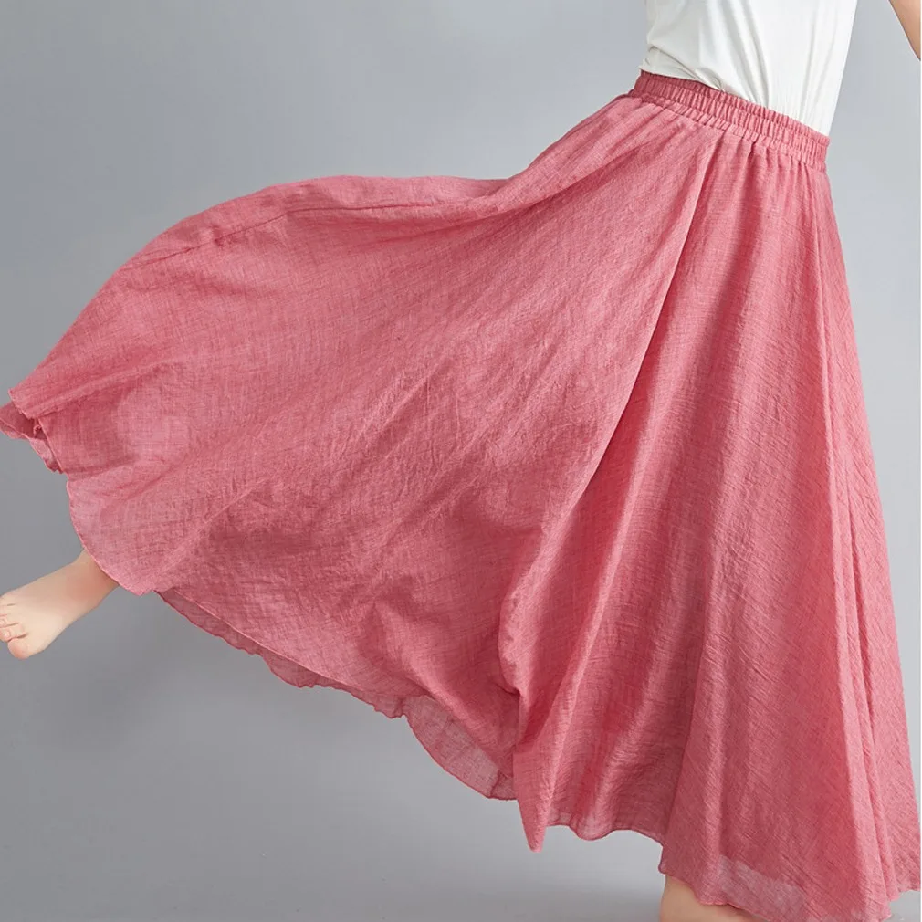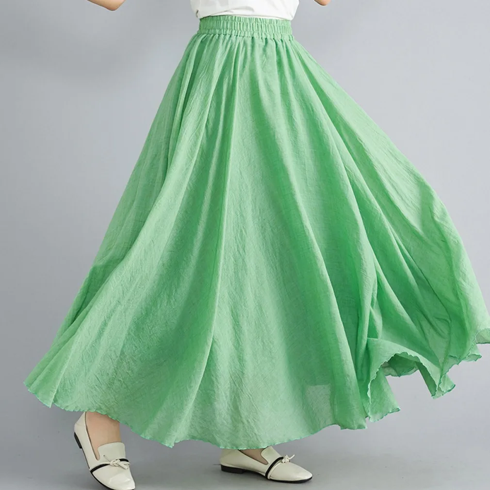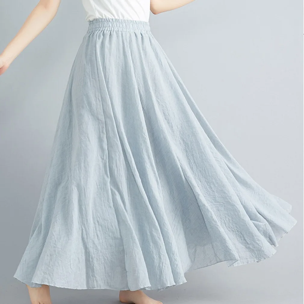 Винтажная льняная юбка-макси в стиле бохо, длинная Повседневная хлопковая пляжная юбка-трапеция в стиле ампир, льняная одежда, 14 цветов