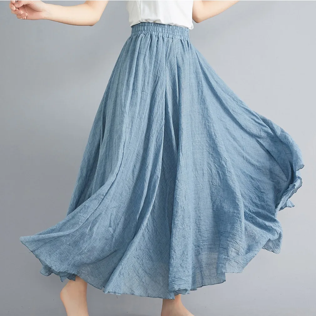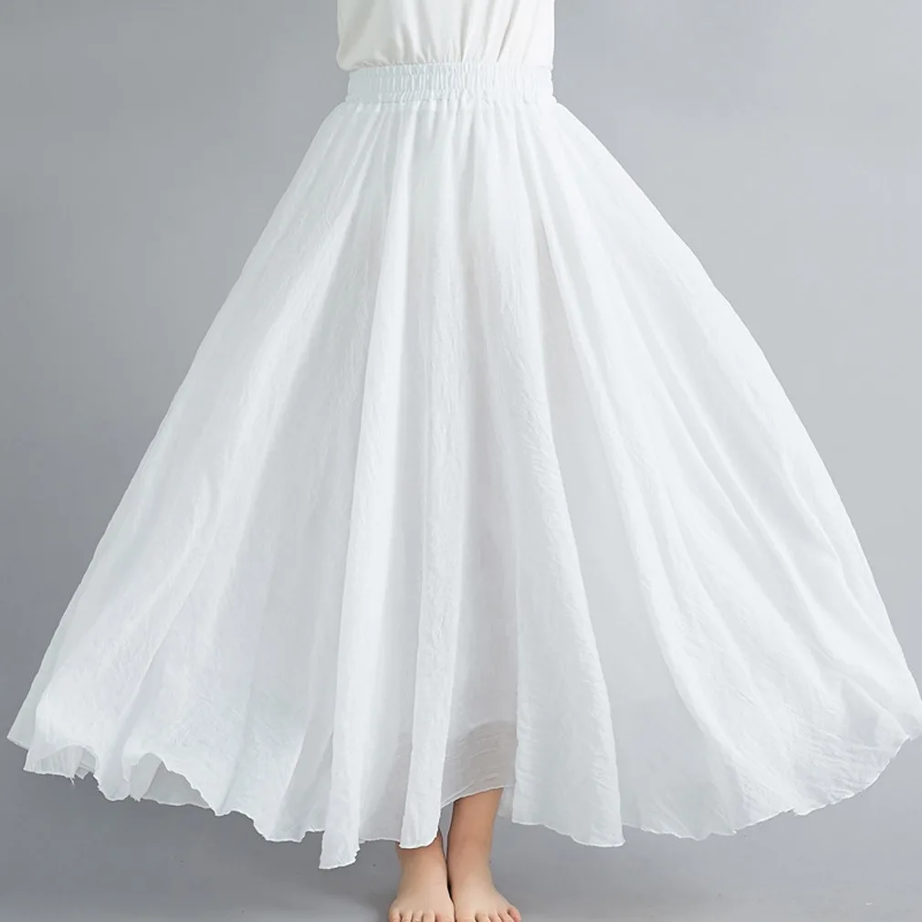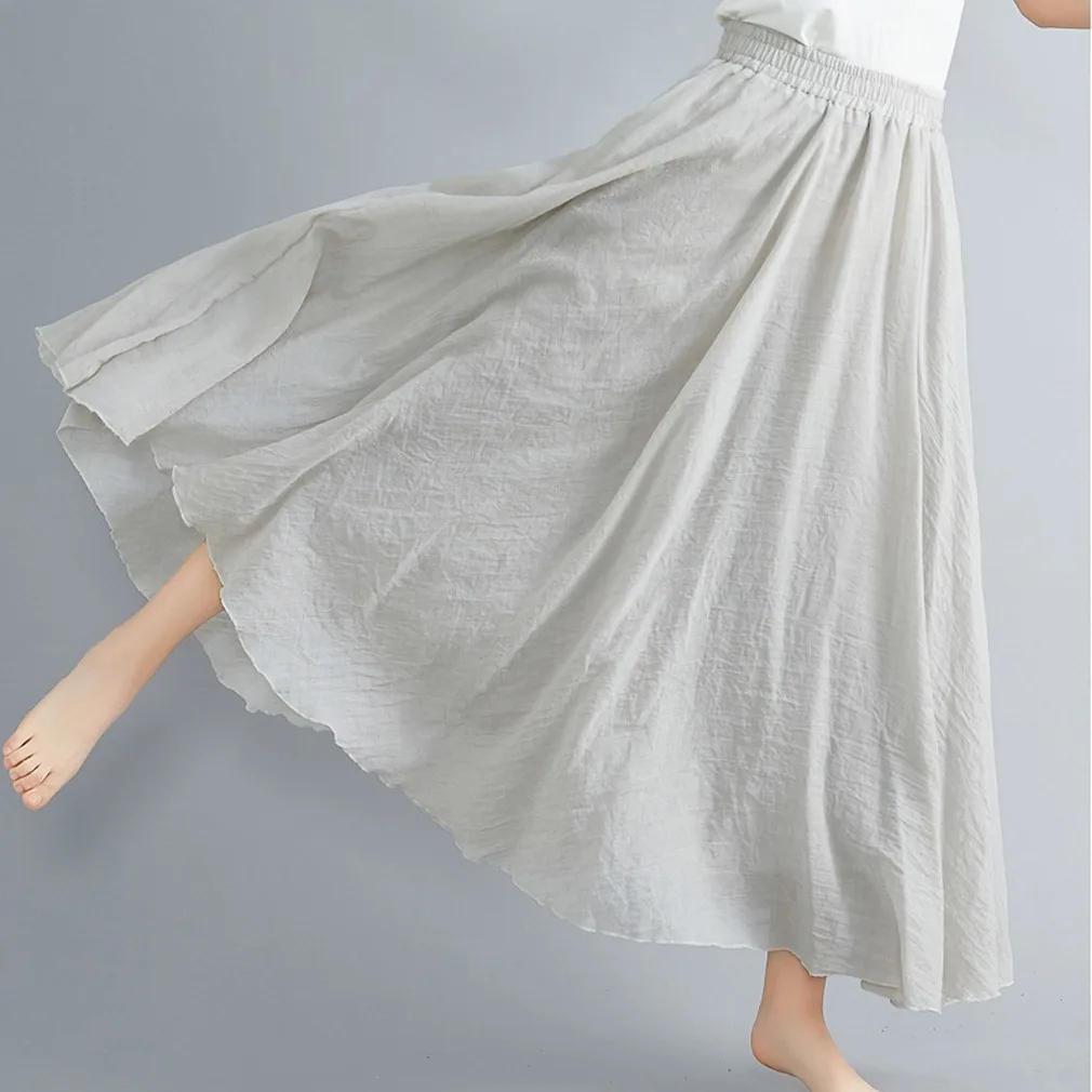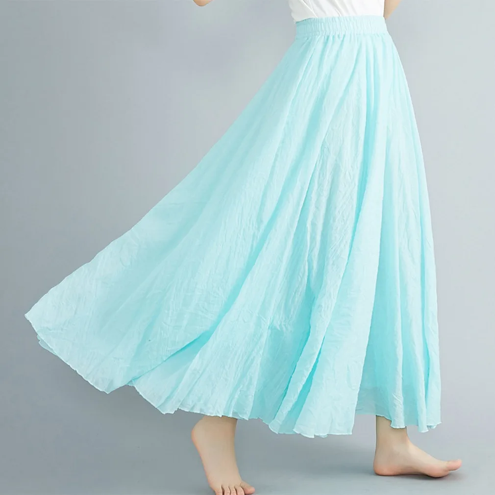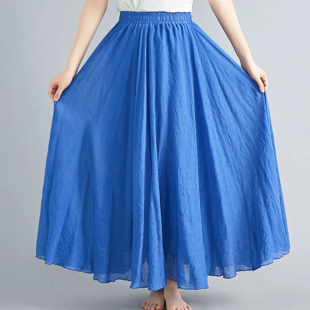 Винтажная льняная юбка-макси в стиле бохо, длинная Повседневная хлопковая пляжная юбка-трапеция в стиле ампир, льняная одежда, 14 цветов
