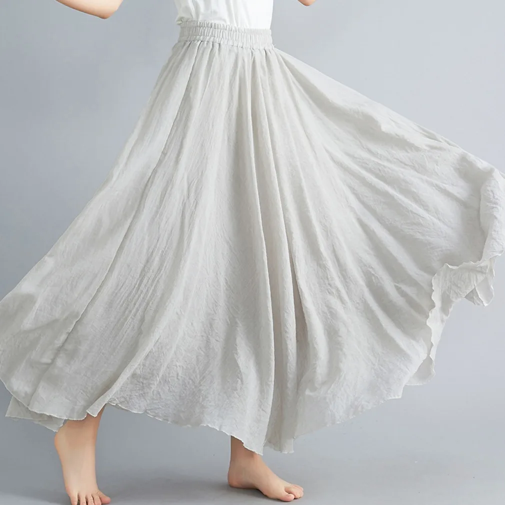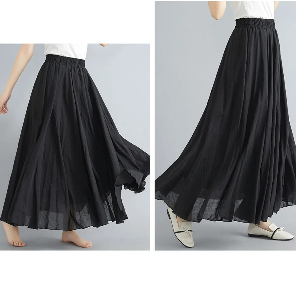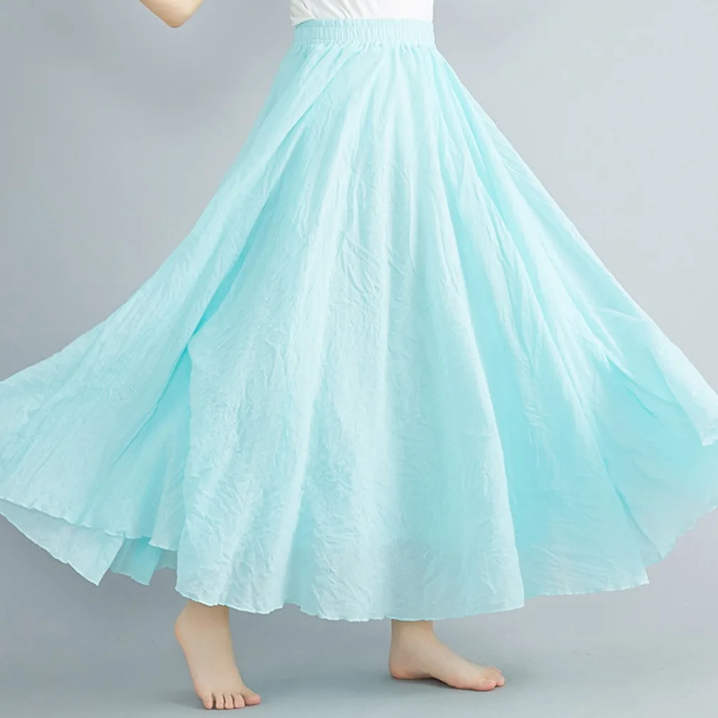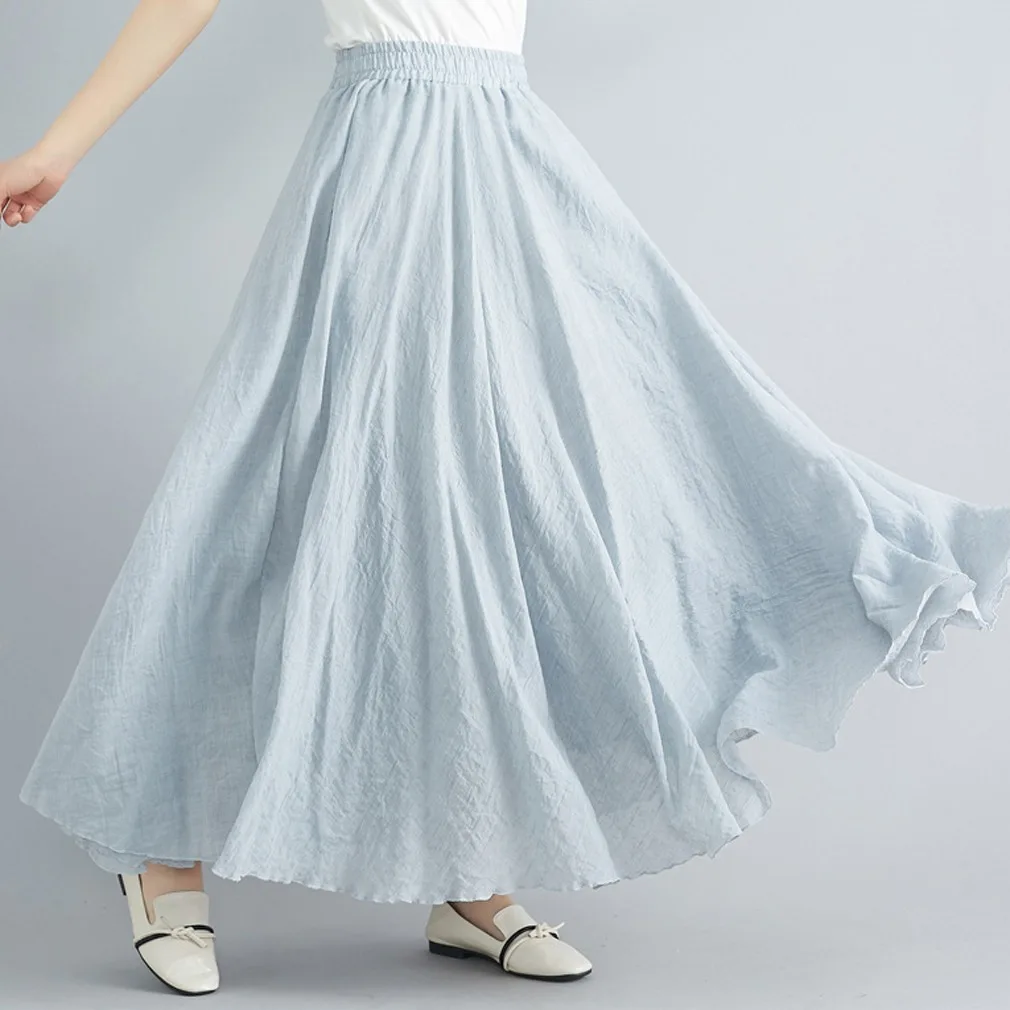 Винтажная льняная юбка-макси в стиле бохо, длинная Повседневная хлопковая пляжная юбка-трапеция в стиле ампир, льняная одежда, 14 цветов
