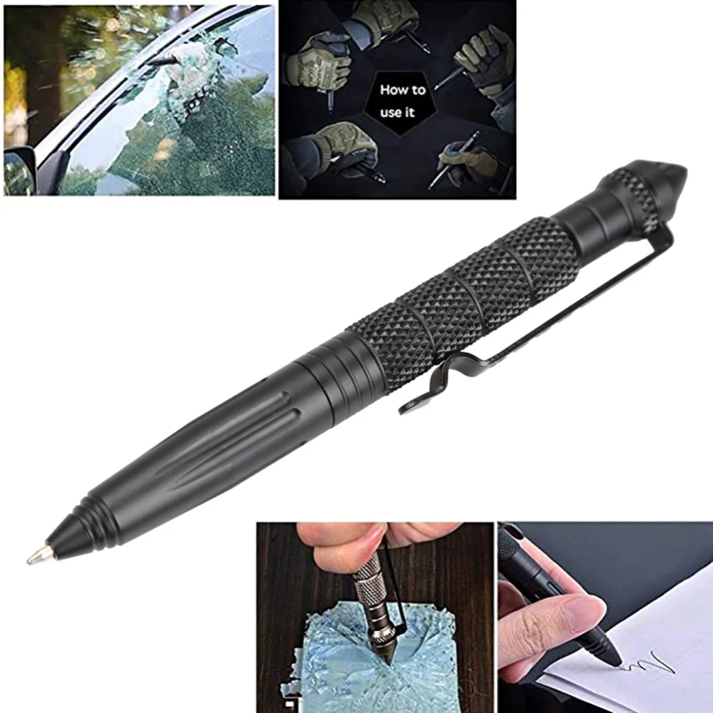 Металлическая шариковая ручка с черными чернилами, нескользящая тактическая ручка из авиационного алюминиевого сплава для самообороны, многофункциональные инструменты