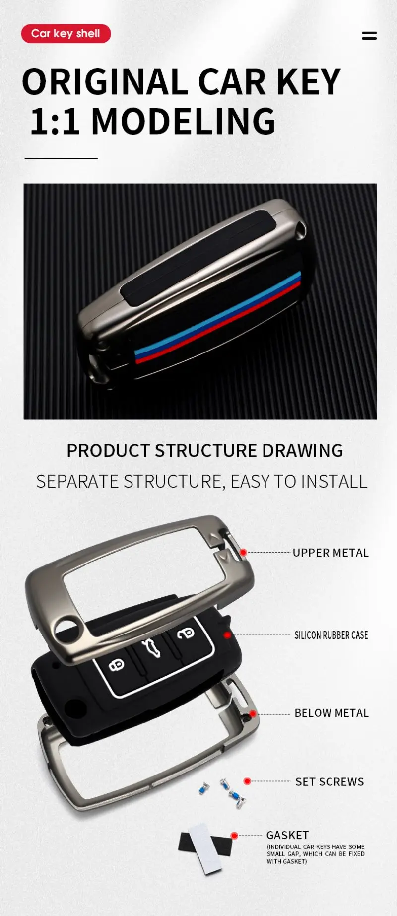Автомобильные чехлы для ключей ATOBABI из цинкового сплава, складной чехол на дистанционное управление для VW Volkswagen Passat GTI Jetta Beetle Polo Golf Tiguan Bora Skoda SEAT, автомобильные аксессуары Особенности и характеристики: 1. Бренд: ATOBABI 2. Материал: цинковый сплав и силикон 3. Кнопки: 3 4. Отлично подходит по размеру ключа и точному положению кнопки. 5. Защитите ваши автомобильные ключи от повреждений и царапин. 6. Чехол для ключей имеет светящийся эффект. 7. Приятный на ощупь и простой в установке. Совместимость с моделями: Для VW: up-Caddy - Jetta - Bora - Beetle - EOS - Golf 4/5/6 - Polo - Passat 3BG/3B - Scirocco - Touran - Tiguan - Touareg - T5 - Multivan 5 - Sharan - Transporter Для Skoda: Fabia 1 - Octavia 2 - Superb - Roomster - Citigo - Yeti Для сидений: Altea - Leon - Ibiza 4 - Mii И т. Д. (Примечание: Совместимость только для справки, пожалуйста, сравните изображение с вашим автомобильным ключом перед покупкой.) Посылка: 1 х чехол для автомобильного ключа 1 х брелок (Автомобильный брелок в комплект не входит.)