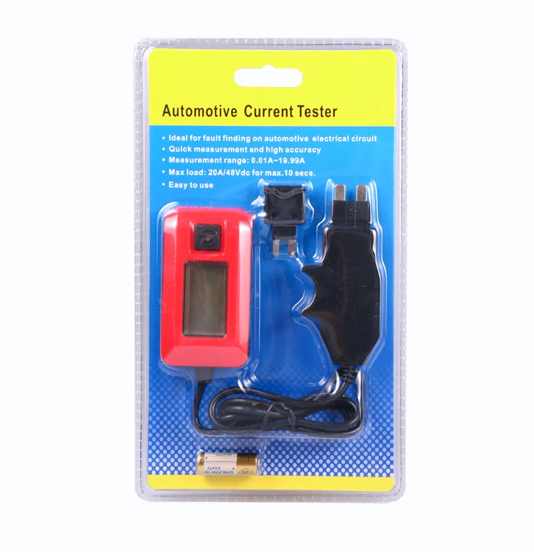 Идеально подходит для обнаружения неисправностей на автомобильной или коммерческой электрической цепи транспортного средства Простота в использовании Быстрое измерение и высокая точность Диапазон измерения: 0.01A ~ 19.99A Максимальная нагрузка: 20A/48Vdc для max.10 secs. Питание от аккумулятора 23A 12 В (без аккумулятора)