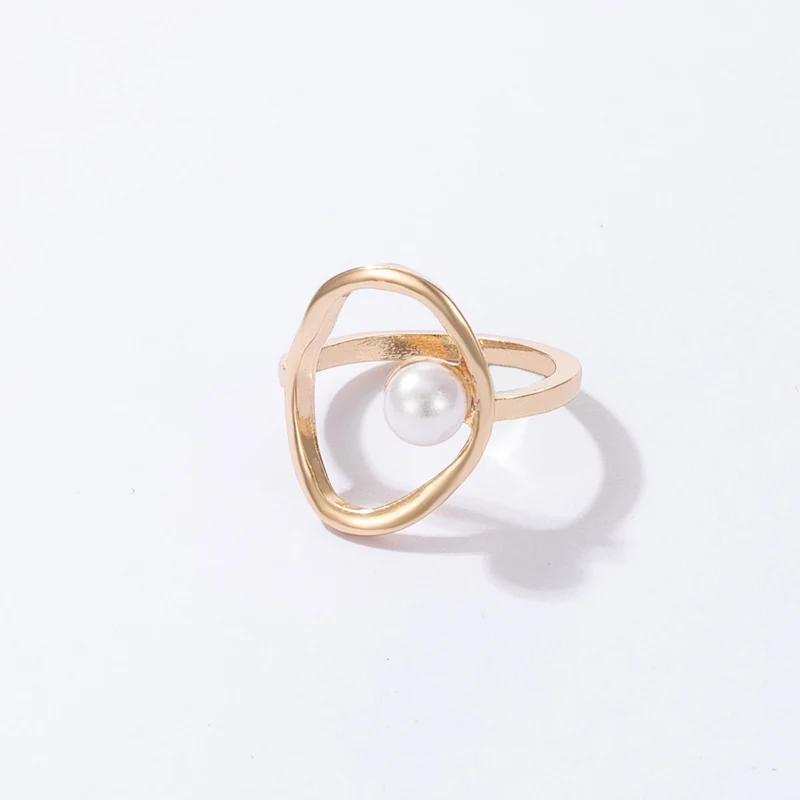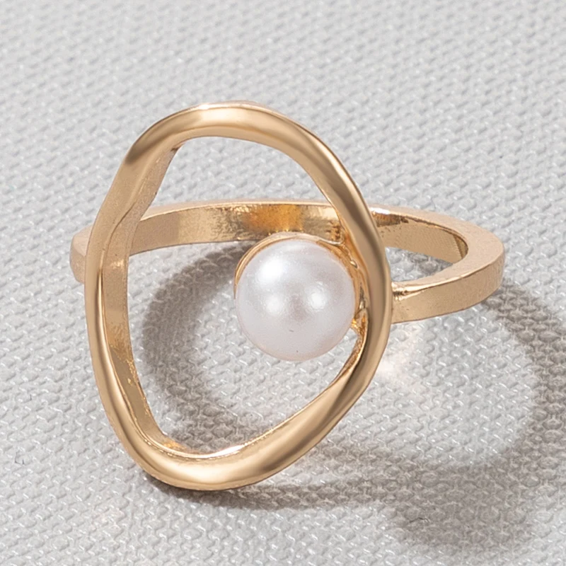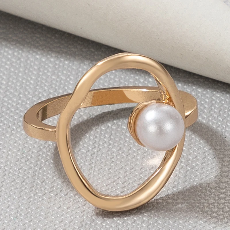 Кольцо Tocona с жемчугом и камнем для женщин и мужчин, элегантное Ювелирное Украшение золотого цвета из сплава и металла, геоэмтрическая вечерняя бижутерия, подарок 2021, 17226