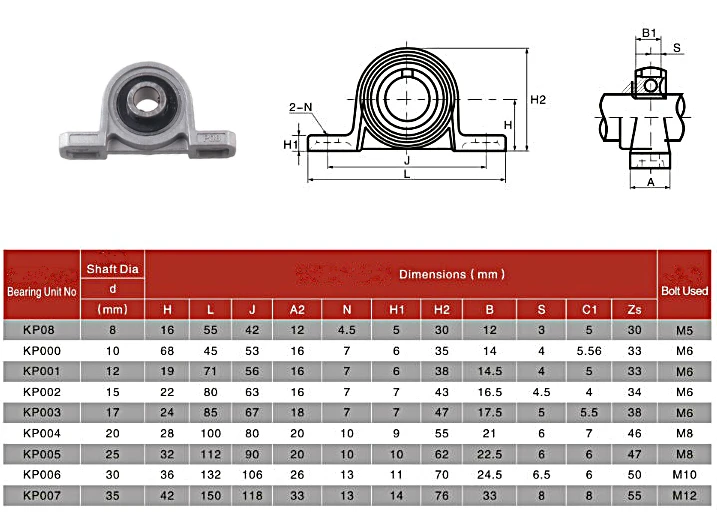 Вертикальный винтовой шарикоподшипник KP08, KP000, KP001, KP002, из цинкового сплава, диаметр 8-35 мм, 4 шт.