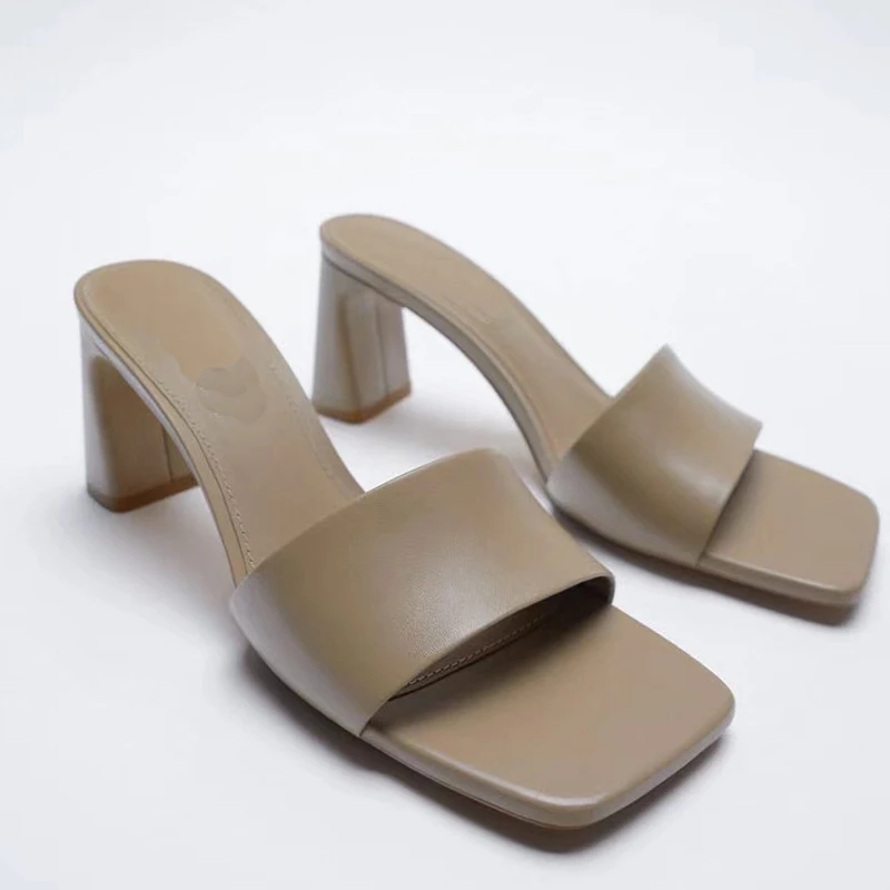 Шлепанцы женские, летние, с квадратным носком, туфли без пяток на высоких каблуках