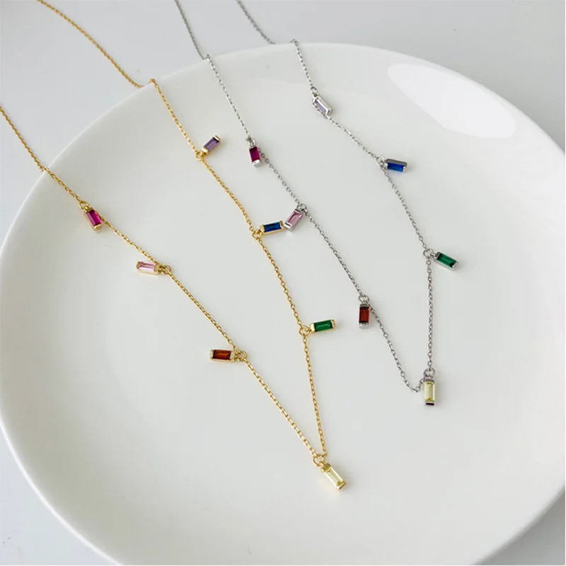 WANTME 925 Стерлинговое Серебро геометрической формы Цвет циркон цепь колье для ключиц для женщин в Корейском стиле очаровательные шикарные Свадебная вечеринка ювелирные изделия