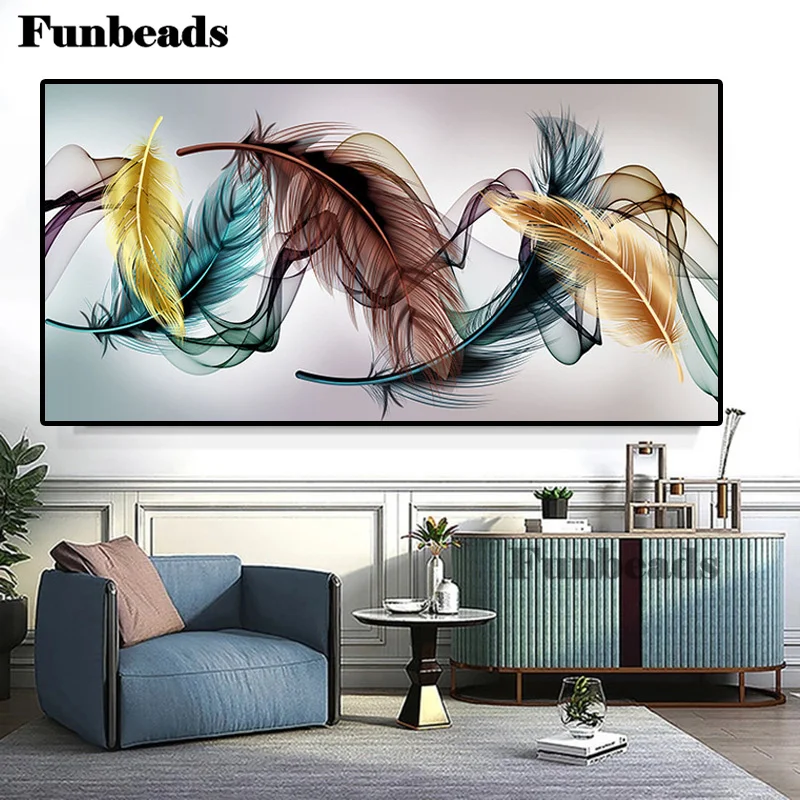 Алмазная живопись большого размера, квадратнаяКруглая Мозаика, абстрактная живопись, перо, крылья, 5D, для творчества, вышивка крестиком, декор ff4183