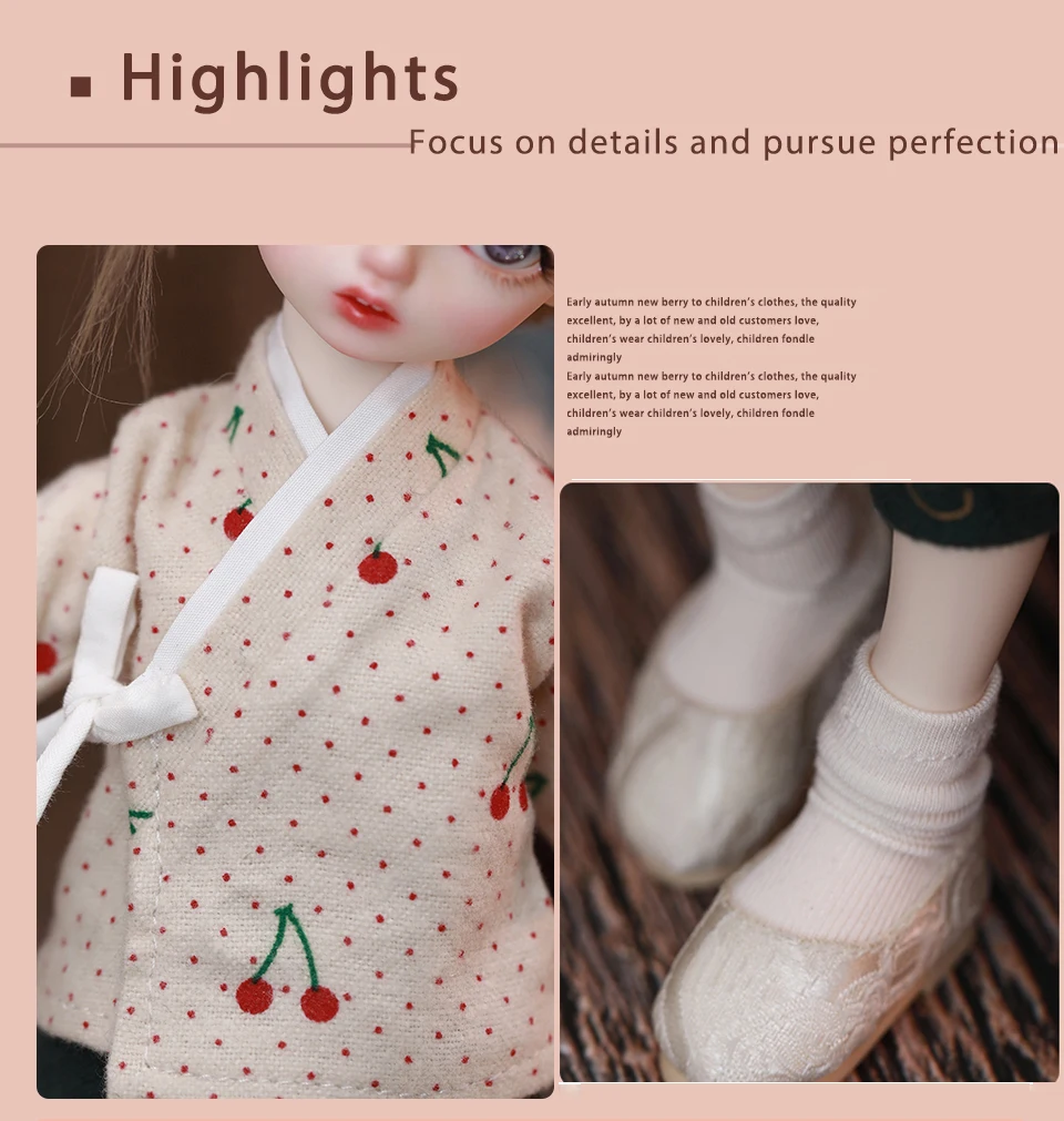 1. Сильная команда: фокусируется на кукле BJD более 10 лет, интегрирует r & d, дизайн, производство и продажи; Владеет оригинальным старшим художником, моделями, комодом, визажистом, от создания, дизайна, до формы, формовки, шлифовки, макияжа, А затем к дизайну одежды и производству до сот рабочих процедур, таких как шитье, моделирование, все завершенные опытными мастерами, представлены вашей кукле BJD каждый стиль уникален и высоко Эстетическая ценность искусства.2. Отборные высококачественные исходные материалы: отборная Высококачественная смола, изысканная и гладкая, удобная на ощупь.3. Изысканный трехмерный макияж: профессиональная команда макияжа, передовые чистые ручные технологии распыления, чтобы создать реалистичный тонкий макияж!4. Переменное моделирование DIY: гибкие соединения, сильная пластичность, различные части могут быть преобразованы по желанию и позе; Также можно изменить макияж, одежду, глаза, волосы и стайлинг.5. Персонализированные настройки: ручная работа, в соответствии с вашими требованиями, настроить вашу эксклюзивную куклу BJD.6. Изысканная подарочная упаковка: фирменная официальная Изысканная упаковочная коробка, Подарочная новая сфера, более красивая и приличная.