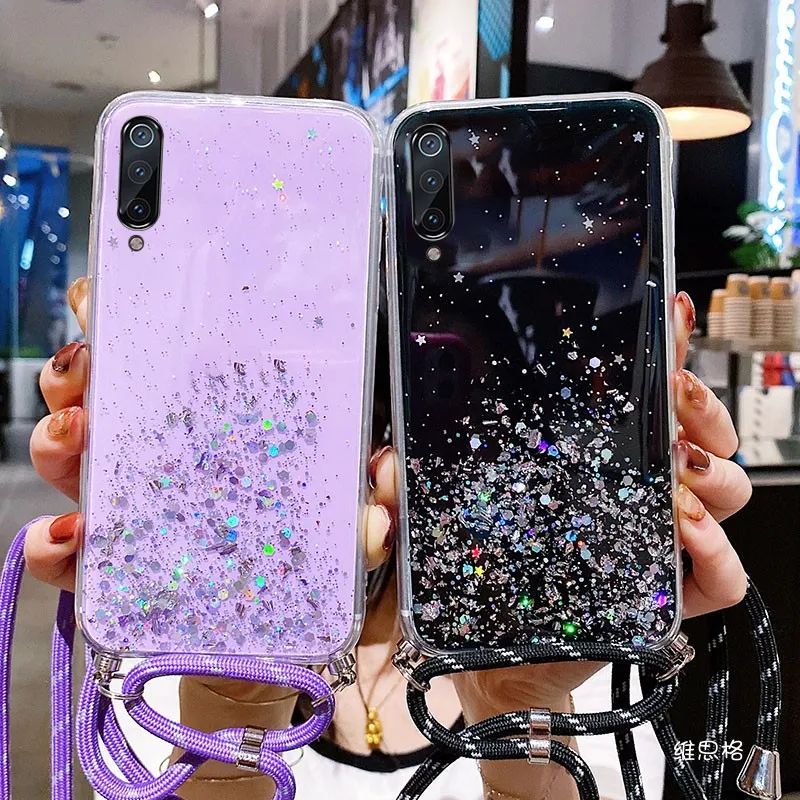 Роскошный блестящий силиконовый чехол с ремешком для Xiaomi 6X 5X 9T 10T Lite 11 Note 10 9 Pro Mi Poco X3 NFC X2 F2