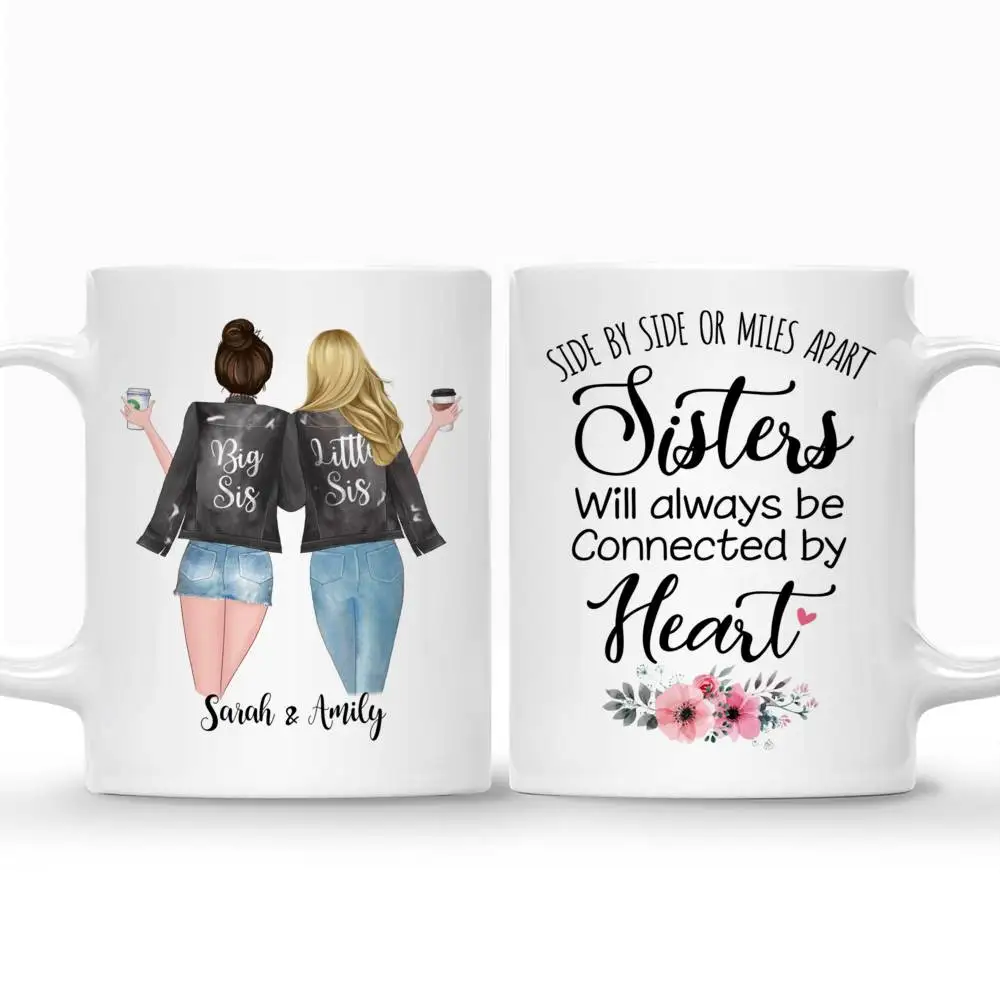 2 сестры, кофейная кружка, персонализированные белые керамические кружки, чашка, подарок для девочек, сестер Forever Never Apart 11oz15oz RR2008