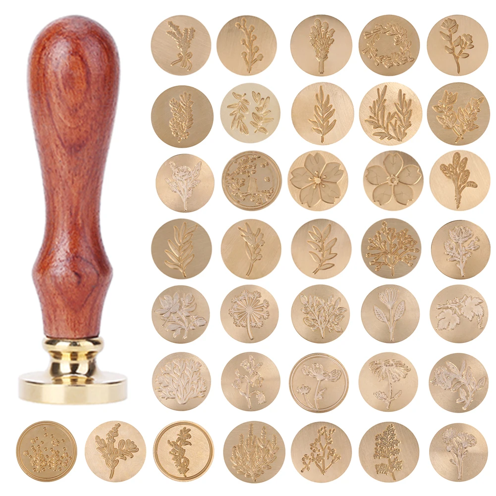 Восковой штамп для запечатывания растений, деревянный, в стиле ретро, восковый узор, печать, штемпели, декоративные штампы для свадебных приглашений