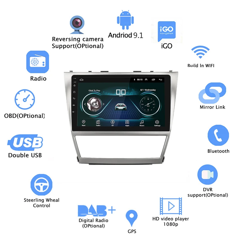 Для Toyota Camry 2007-2011 10,1 дюймовый экран Android 10,1 Автомобильная Стерео Gps-навигация Радио Bluetooth Автомобильный мультимедийный видеоплеер