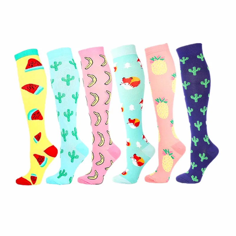 Носки компрессионные для мужчин и женщин, милые Компрессионные гольфы с изображением варикозного расширения вен, кактуса, лисы, Длинные чулки для велоспорта