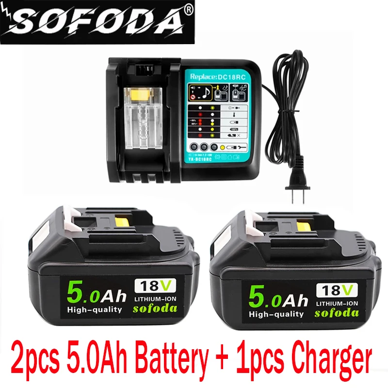 Сменный аккумулятор SOFODA BL1850 18 в 5000 Ач для электроинструмента Makita, аккумулятор BL1840 BL1860 со светодиодный ным дисплеем мощности 18 в 5 А, мАч