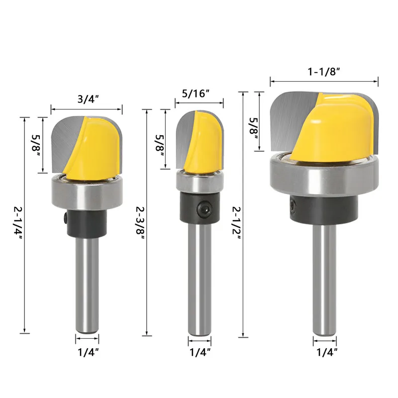 3 шт. 6 мм 1/4 Shank1/2 "3/4" 1-1/8 "диаметр чаши и лоток шаблонный маршрутизатор бит инструмент для резки древесины деревообрабатывающие фрезы