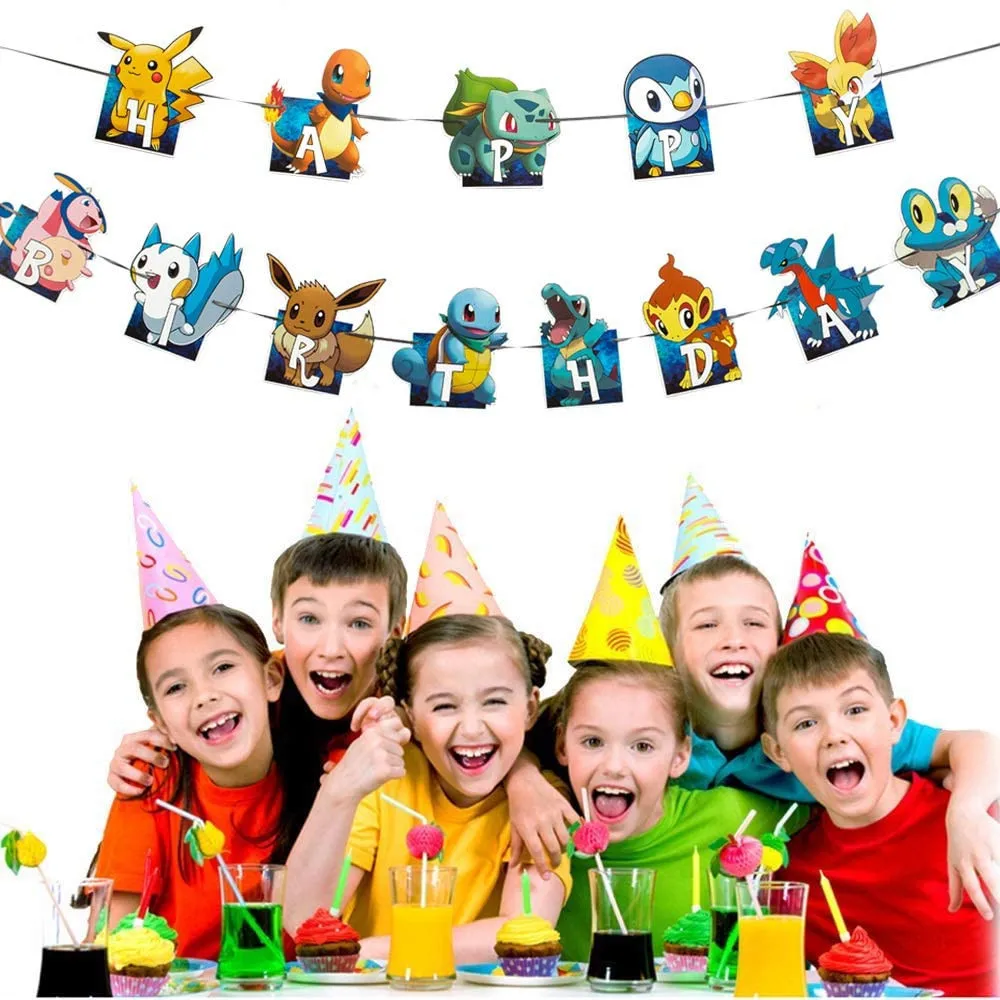 Покемон, торт на день рождения, флаг, Декорации для вечерние, Пикач...