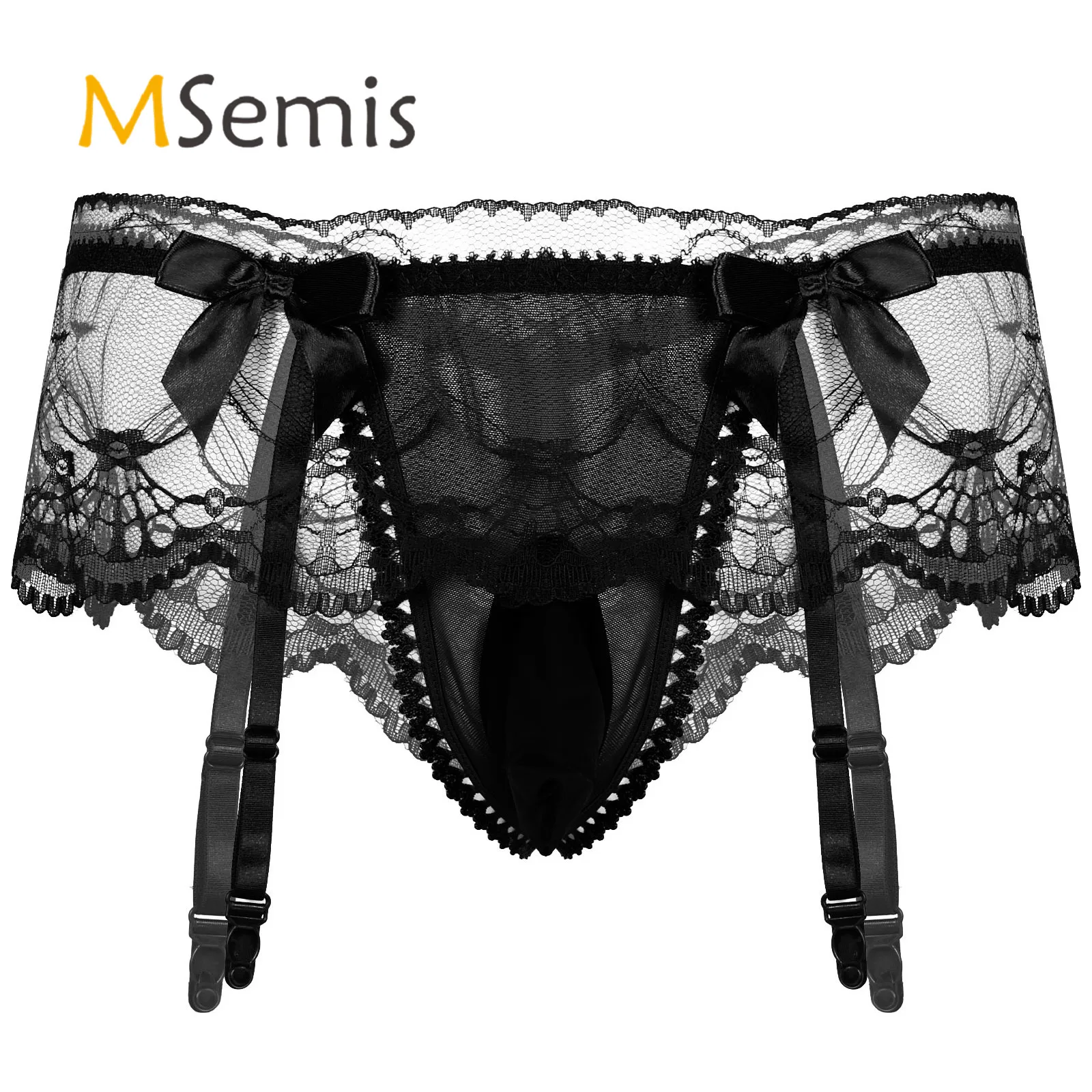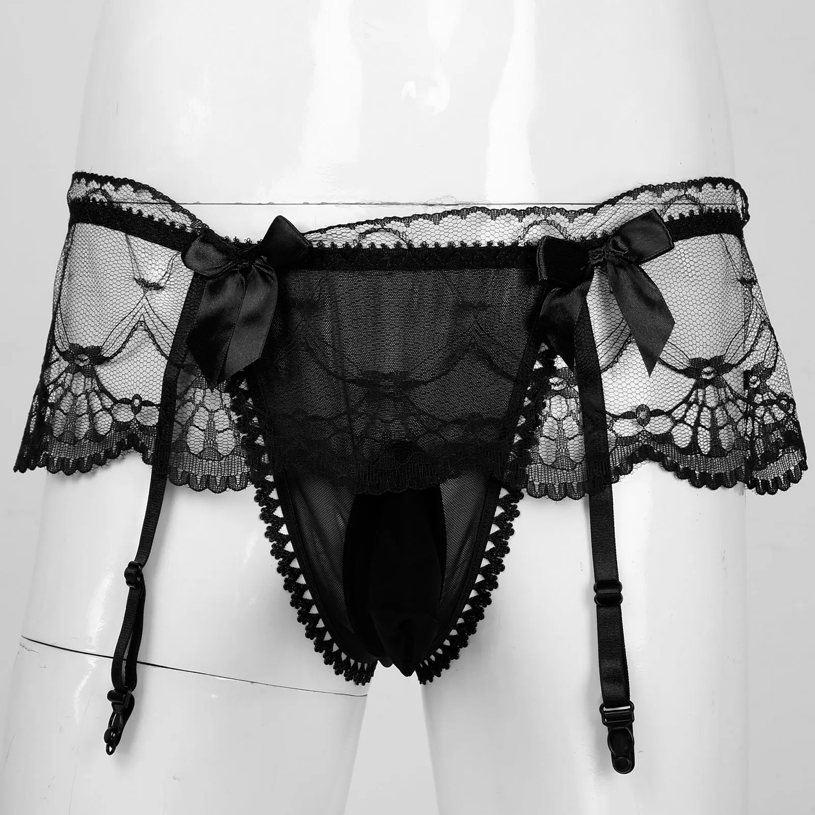 Мужское сексуальное нижнее белье, трусы с Т-образной застежкой, с маленьким бантом, мужское кружевное нижнее белье, трусы